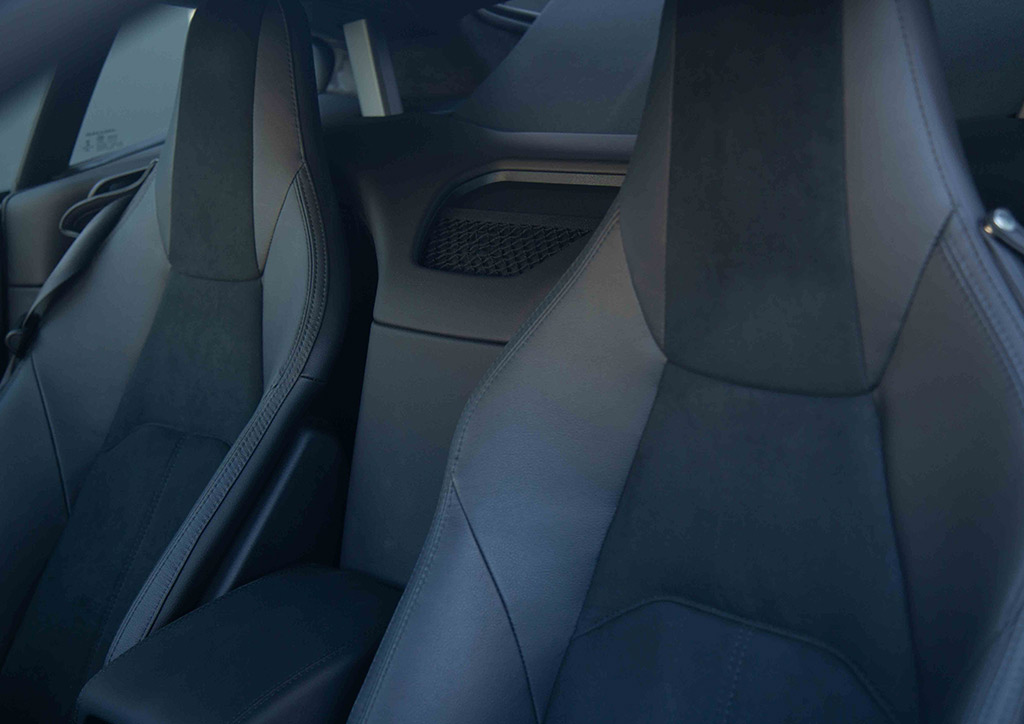 The front of the vehicle fits the sports car identity. Super-slim pixel LED headlights complement the clamshell bonnet hood and the assertive and enlarged grille. It provides an exaggerated visual of the car, giving it more personality and impact.