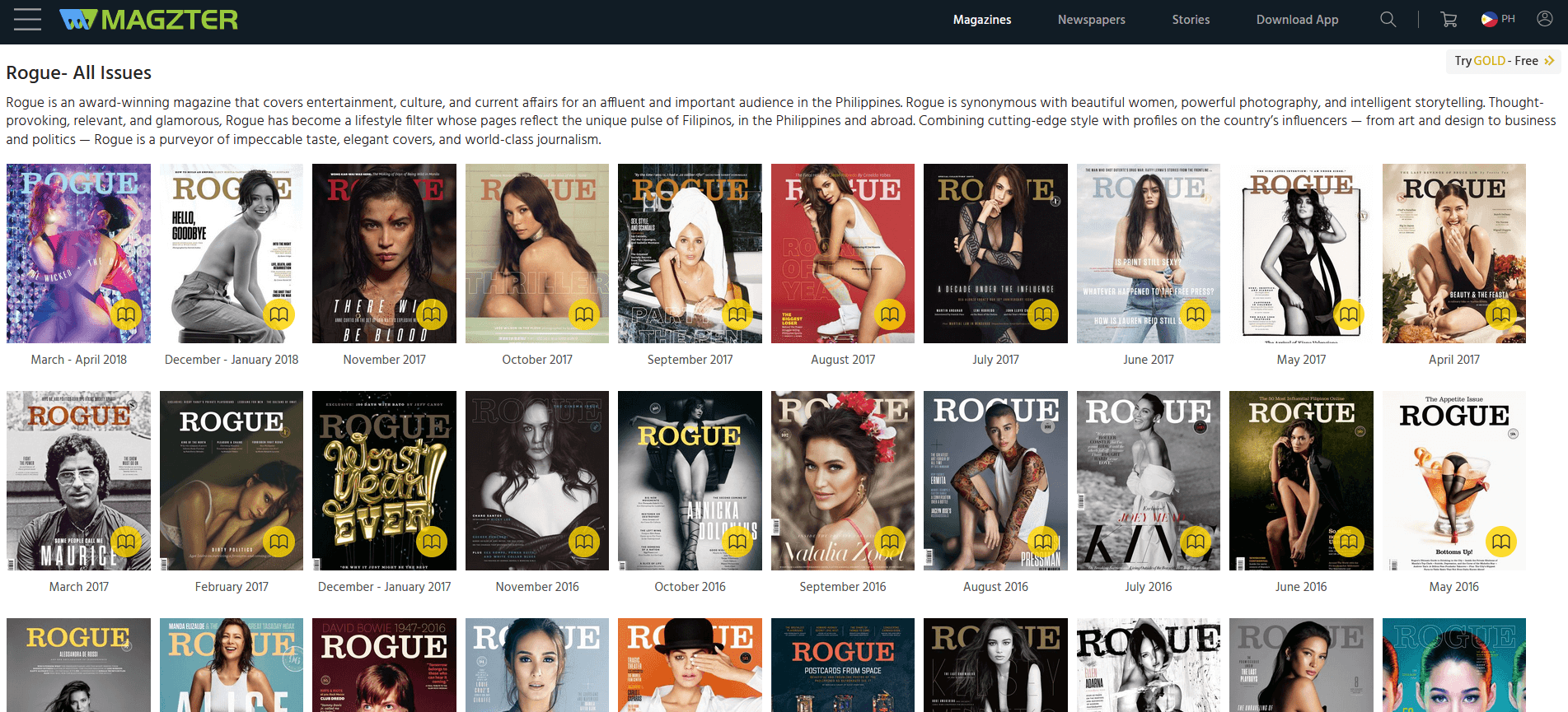 A local example of this: most issues of the now defunct Rogue magazine are available through the platform Magzter. But what will happen when, perhaps years from now, the platform ceases to exist? Will anyone release digital backups of the magazine? Hopefully there’s someone out there with physical copies of the magazines, who may one day do archival work like Y2K Kabaklaan on Instagram and magasin archive on X.