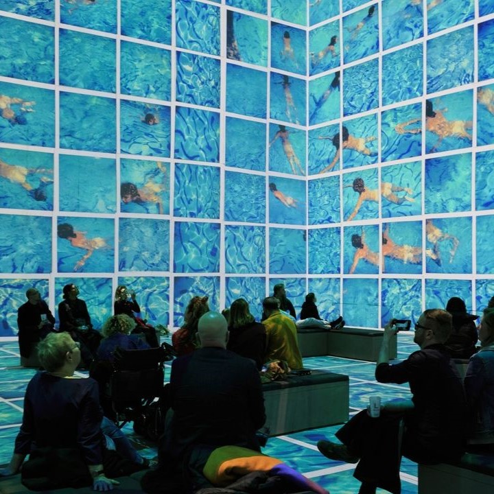 “Bigger & Closer” takes viewers inside the English painter’s artworks and chronicles his six-decade career through mesmerizing digital projections.