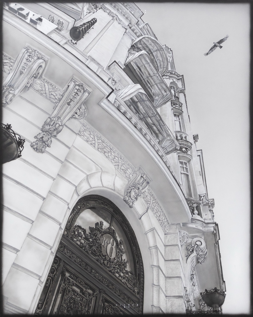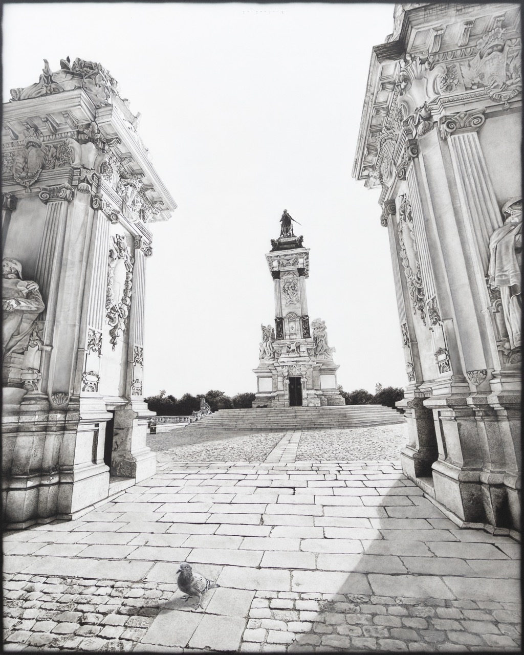 An overview of the Philippine art scene today isn’t complete without the name Arnold Lalongisip. The artist has become a fixture in Filipino contemporary art through his sought-after, hyperrealistic black-and-white paintings of nature. Yet in his latest series of works, The Madrid Collection, Lalongisip ventures beyond his depictions of twisting trees, delicate flora, and vast waterscapes, opting to capture an urban environment for the very first time in his career.