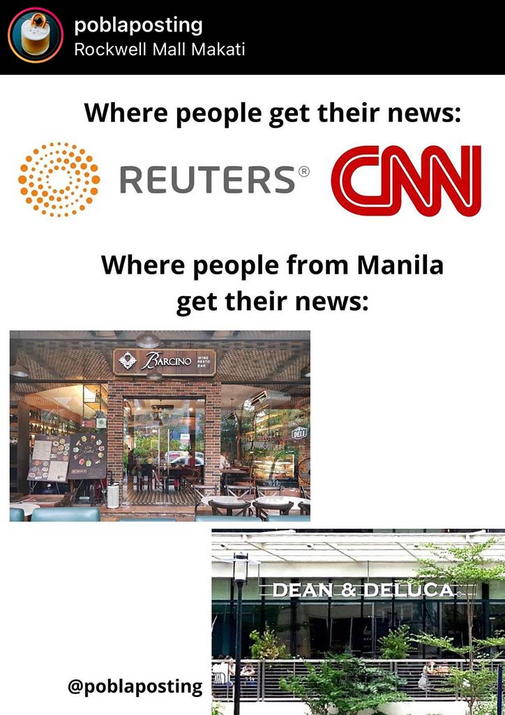 I say both because a quick look at Twitter shows people calling out the page for its unchecked elitism. I’ve seen sentiments among the variation of “It’s not funny, because the crowd it’s for is extremely narrow,” or “its sense of humor skews matapobre.” “It’s very sexist,” one said.