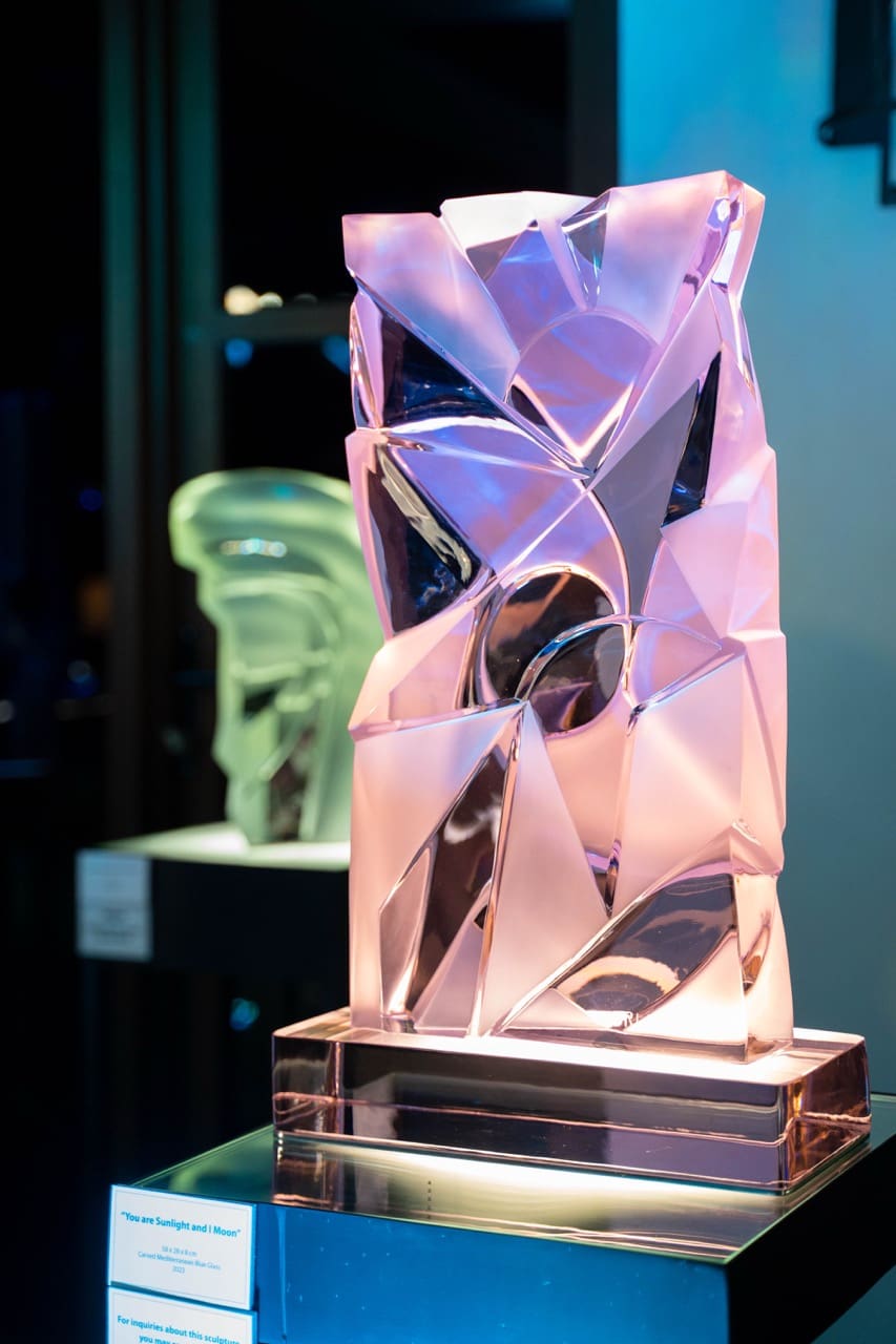 Orlina is one of the Philippines’s most prominent artists, best known for his sculptural works made of glass, each one created using a special “cold method” that he developed on his own, which involves the careful cutting, grinding, and polishing of large, dense blocks of glass. According to Orlina, each piece takes roughly a month and a half to create.