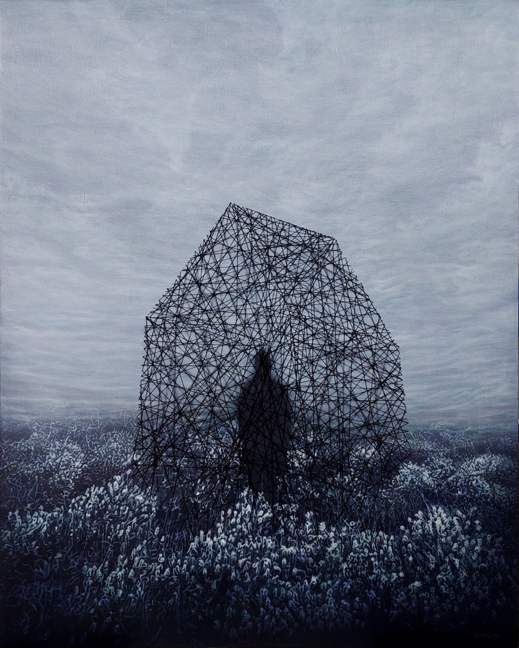 On his chosen medium or colors he explains that, “At times, the best medium for expressing a particular idea is neither painting nor installation. Materials, in my opinion, can also serve as a source of information and a means of emphasizing and further pushing the narrative in a way that is both universal and personal. My painting is a product of several layers (around 10 to 17 delicate layers of paint). At the latter part of my execution, my process will become more subtractive, covering and simplifying hues and tones to achieve a certain mood and neutrality. This process helps me to filter out the unnecessary details and information in my work, clinging to the idea of minimalism—all but essential.”