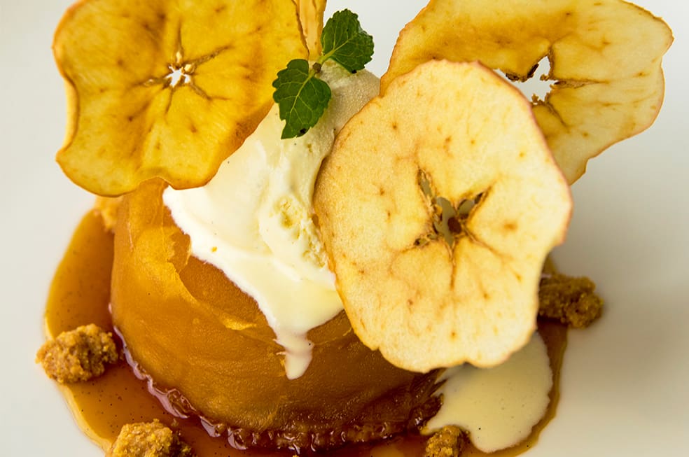 French desserts are taken as seriously as the main dishes at Mirèio. The wide selection at the restaurant features Provençal twists on classic confections. Although, the lavender crème brulee with lemon madeleine and roasted compote provencale is as delicious as it is creative, the Apple Tart Tatin is the piece de resistance. A large scoop of Vanilla ice cream sits on a tender, caramelized apple with crust, while thinly cut slices of crisp apple stand firmly around it like a crown. Mirèio would have been pleased.