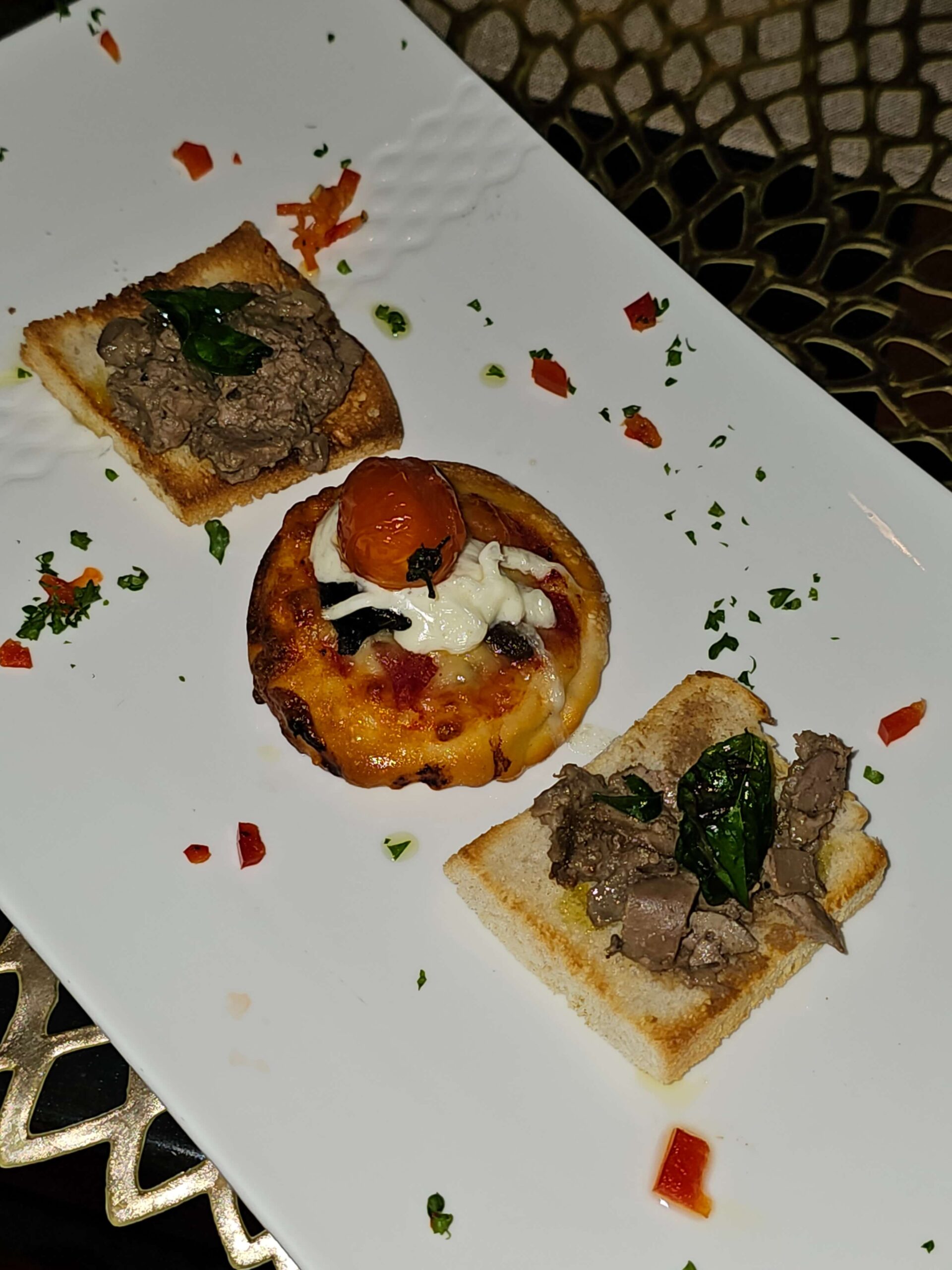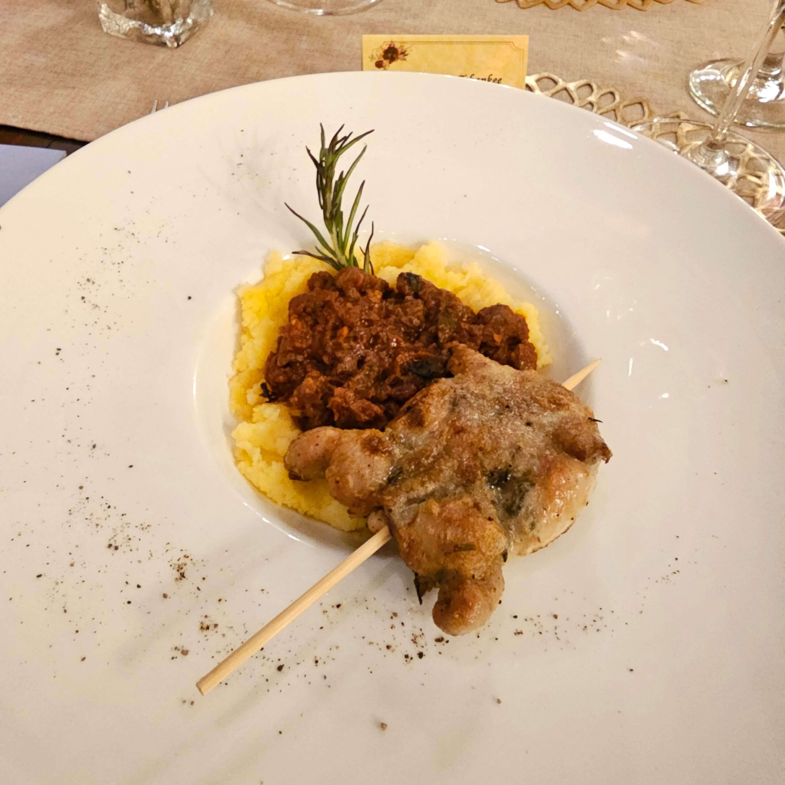 Classic Tuscan chicken liver crostini, the same recipe of Caterina de Medici’s chicken liver crostini dipped in a capon broth, and bite sized pizzettas paired with Le Rime Pinot Grigio IGT 2020 was served upon the arrival guests. Then a Tuscan antipasto of cannellini beans cooked inside a Chianti flask on top of a panzanella bread salad which was served with Chianti Classico Riserva DOCG 2019. A very thick and double boiled tomato soup and bread washed down with Rosso di Montalcino DOC 2020 prepared guests for the main courses.