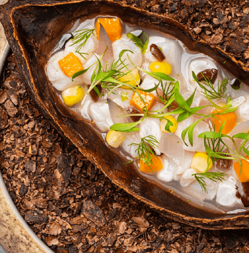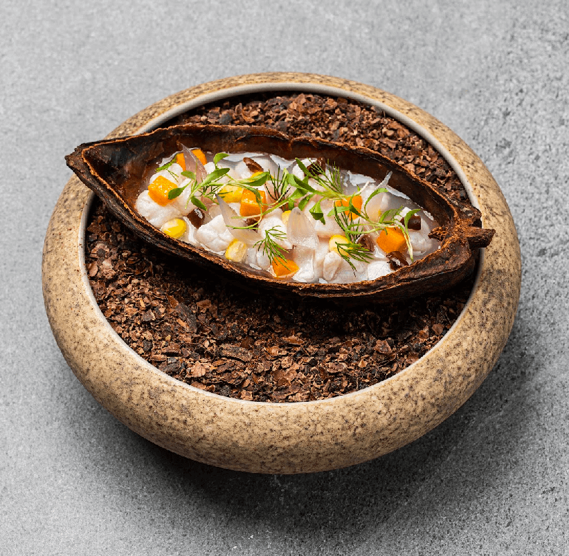 “We haven’t done a lot of research on cacao as a tropical fruit,” he explained. This is why the chef has placed it front and center in a new menu for Gallery, which aims to explore the many nuanced flavors and uses of the bean. “The industry usually just throws the mucilage or the pulp into the garbage in the process of getting the beans to create chocolate. We have witnessed that there is just so much more to this amazing produce,” the chef shared in an official statement on his latest cacao tasting menu.