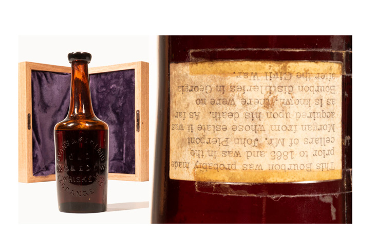 “The Old Ingledew Whiskey, bottled by Evans & Ragland, Lagrange GA, c. 1860s, is thought to be the only surviving bottle of a trio from the cellar of J.P. Morgan gifted in the 1940s to Washington power elite,” says Joseph Hyman, Skinner’s rare spirits expert, in the announcement.