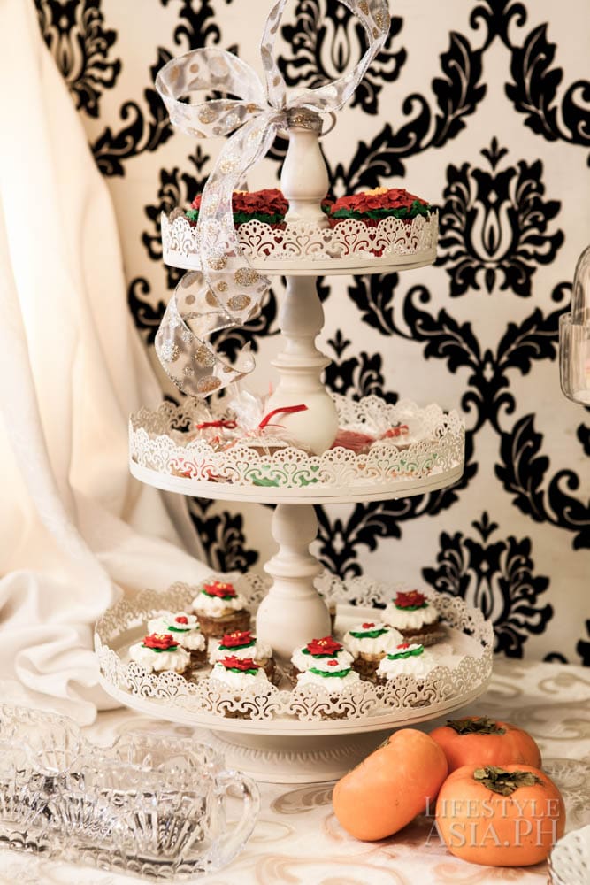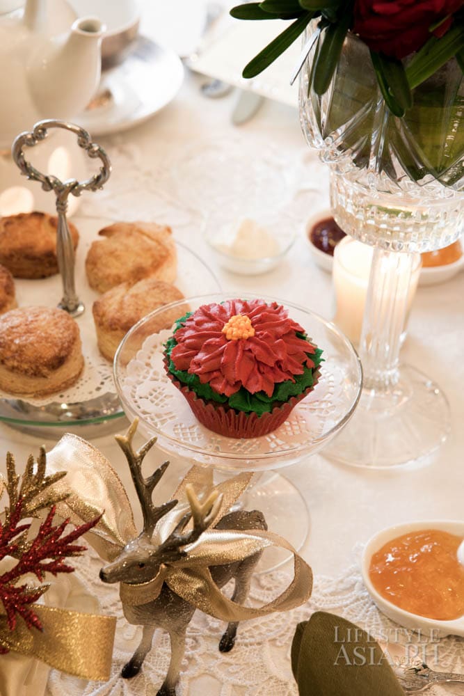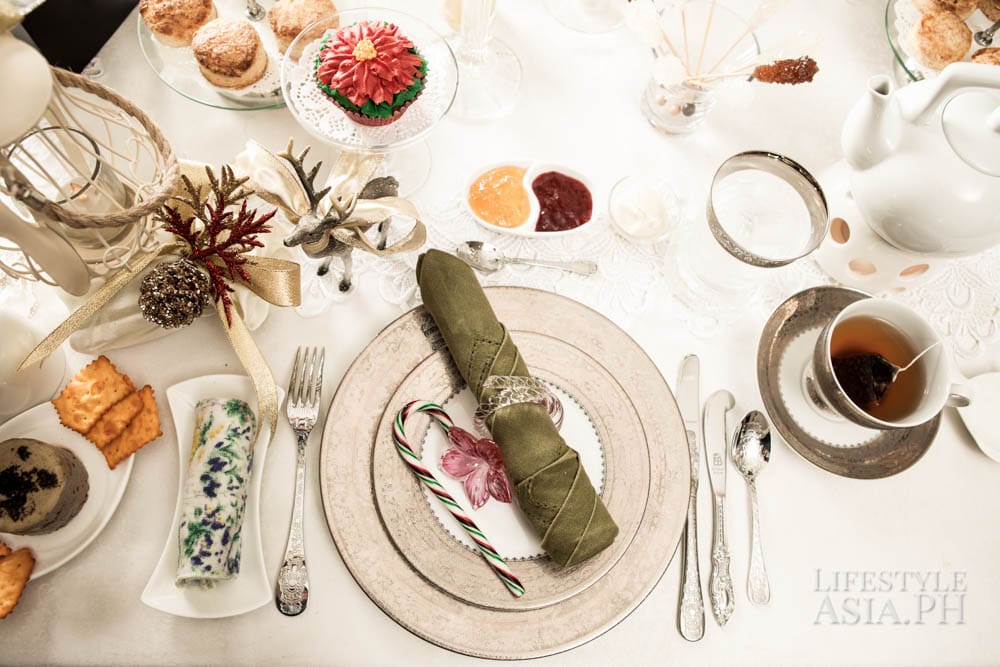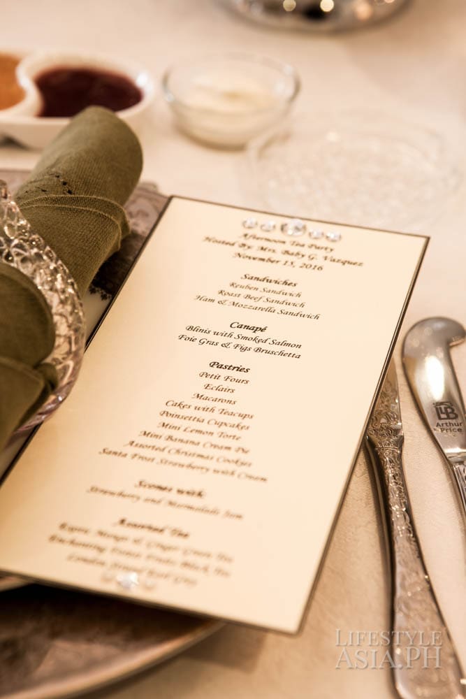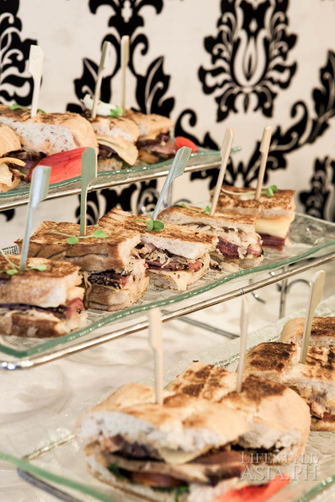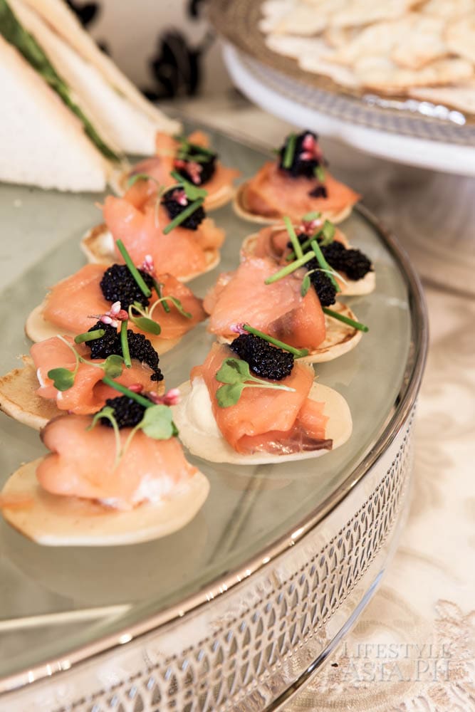 “I wanted the food to be more filling because of the time, being close to early evening, so I added roast beef sandwiches and mini Reuben sandwiches. There was the usual blinis with salmon and to add pizazz, I served foie gras with figs bruschettes. That was for the savories. It wouldn’t be afternoon tea without scones and marmalade and sweet jams. There were petit, eclairs, macarons and cupcakes.”