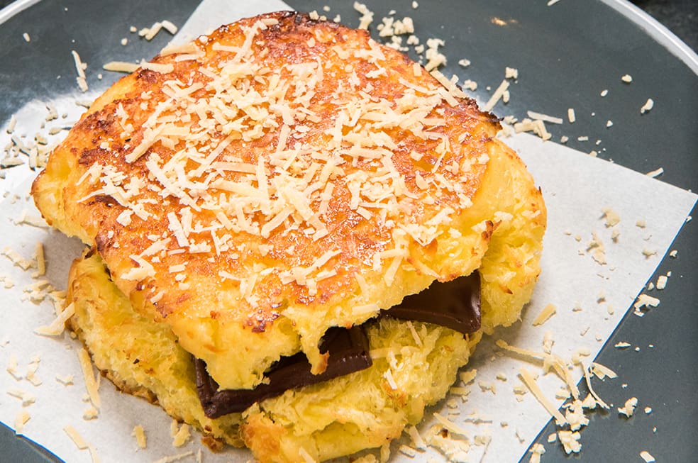 Bakerē’s specialties are her ensaymada, Food for the Gods, and more recently, the Cheese Cupcakes, or what RJ calls the “millennial ensaymada.” Boxes of ensaymada are commonly given as gifts during Christmastime because they are so special and take quite a bit of effort to make. It is no surprise that one can never have just one Bakerē ensaymada; each fluffy, buttery bun is crowned with grated queso de bola and glazed with just the right amount of sugar. Bakerē puts its own spin on traditional pairings by introducing sandwiches of Grilled Ensaymada with Ham and Grilled Ensaymada with Chocolate. Equally scrumptious to the last bite!