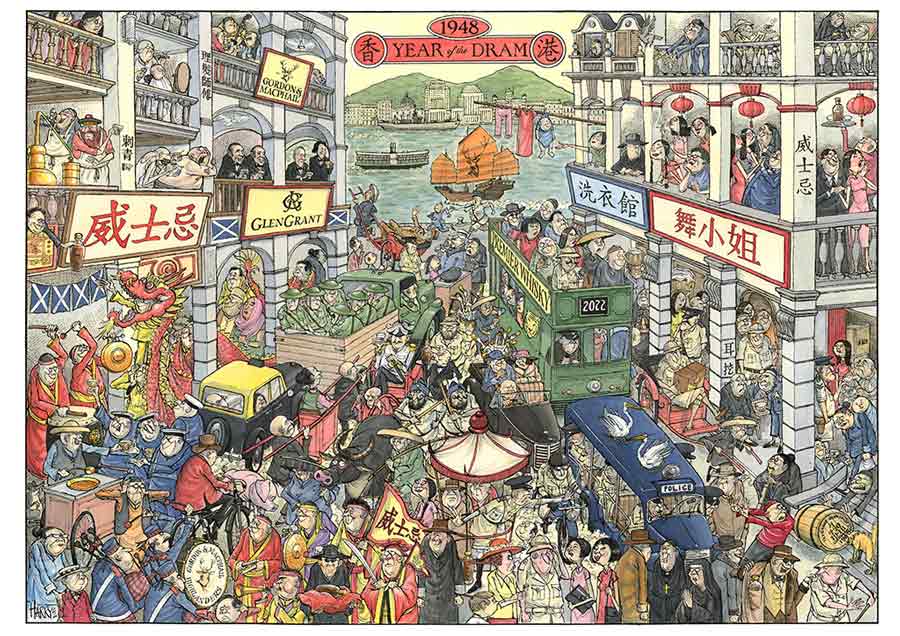 The accompanying NFT artwork “Year of the Dram 1948” was commissioned from celebrated South China Morning Post artist Harry Harrison. His controversial sketches over the years have captured the unique essence of Hong Kong. It also marks the first time Harrison’s work has been minted as an NFT.