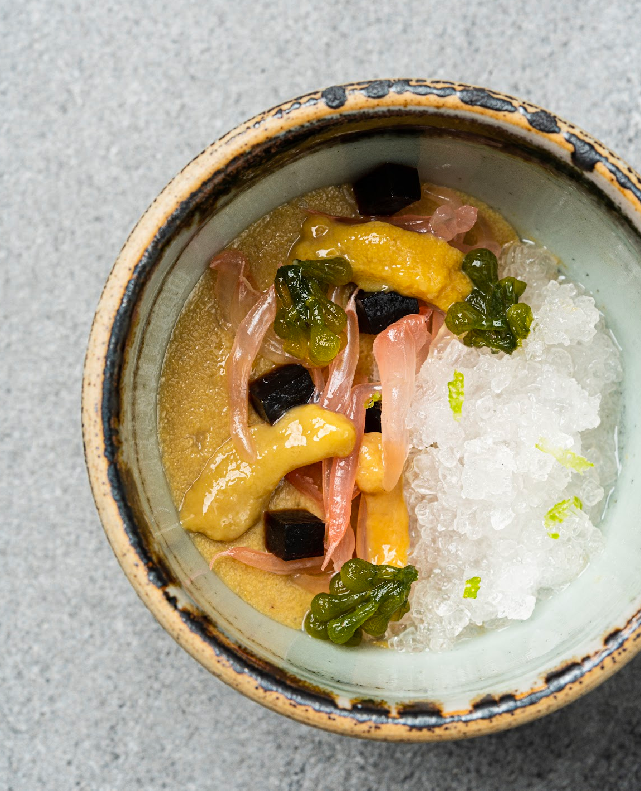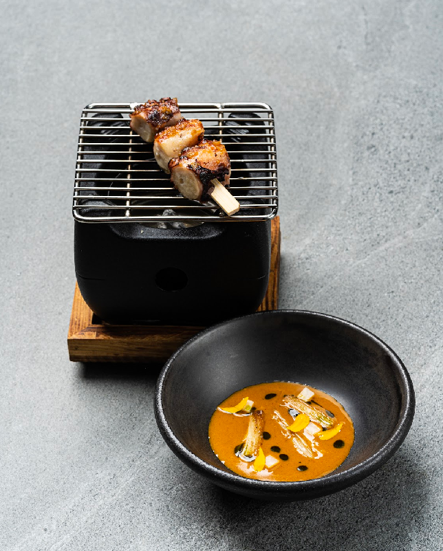 New dishes that stand out include the swimmer crab with aligue (crab roe), shiitake mushrooms, and aromatics as well as the octopus stay, citrus slipper lobster wrapped in kale with beurre blanc, duck cacao in beetroot and mole, and the tuna belly inasal.