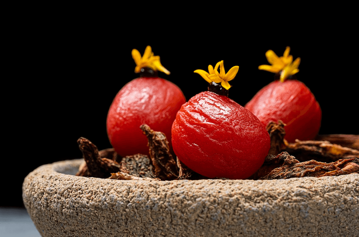 “We’ve been working with Rob Crisostomo from Tigre Y Oliva Craft Chocolate for a while now. Recently we found out that they now are capable of extracting and pasteurizing cacao pulp juice,” shares Kevin Menendez, Gallery by Chele’s R&D chef. After being extracted from the mucilage, the pulp juice undergoes a stabilization process and is concentrated into syrup. This syrup is then used as a sweetener substitute in the new menu. The research and development team also utilizes cascaras or cacao shells to create fermented products such as vinegar and kombucha, which are also featured in the restaurant’s dishes.