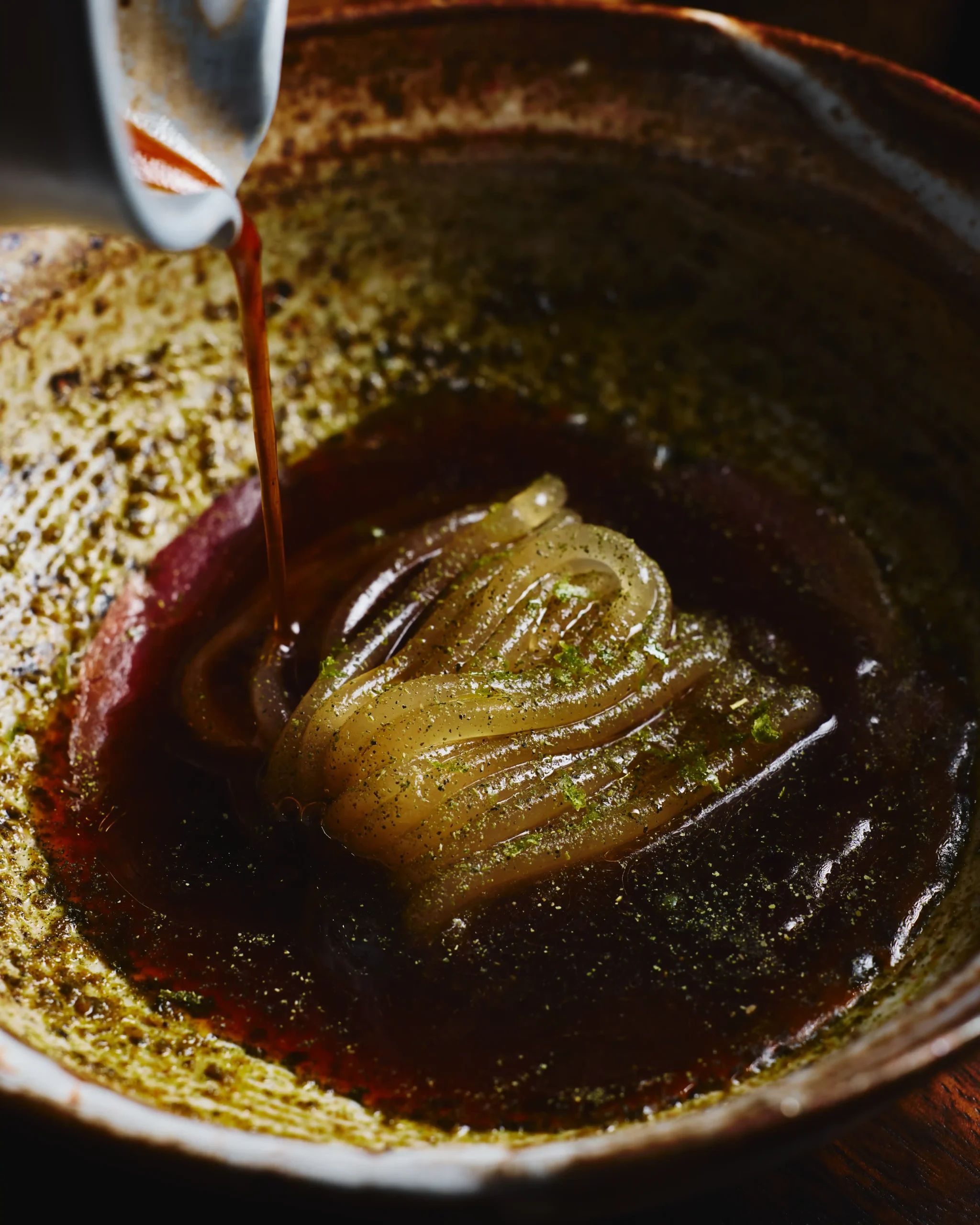 The Discovery Menu distills two decades of Asian cooking experience into a breezy 10-course dinner, paired with thoughtfully selected wine varietals by the restaurant’s in-house sommelier. It opens with brodo—a vibrant, delicate broth made by simmering fish bones for hours. Light yet deeply flavorful, it’s unlike anything you’ll find on most Manila menus today.
