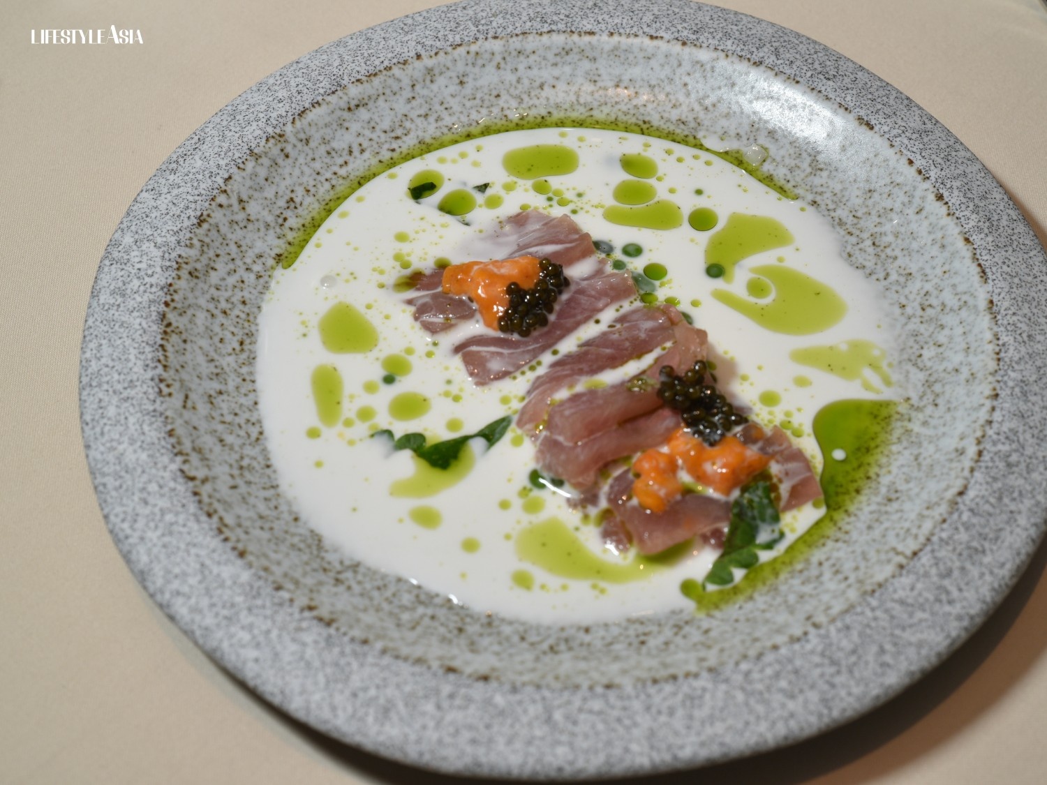 For the evening’s performance, the dishes served included tuna kinilaw with Japanese uni, caviar, and shisho; grouper with buerre blanc, citrus emulsion, and ikura; Japanese Wagyu A5 with cherry; and pandan ice cream with coconut and cereal prawn.