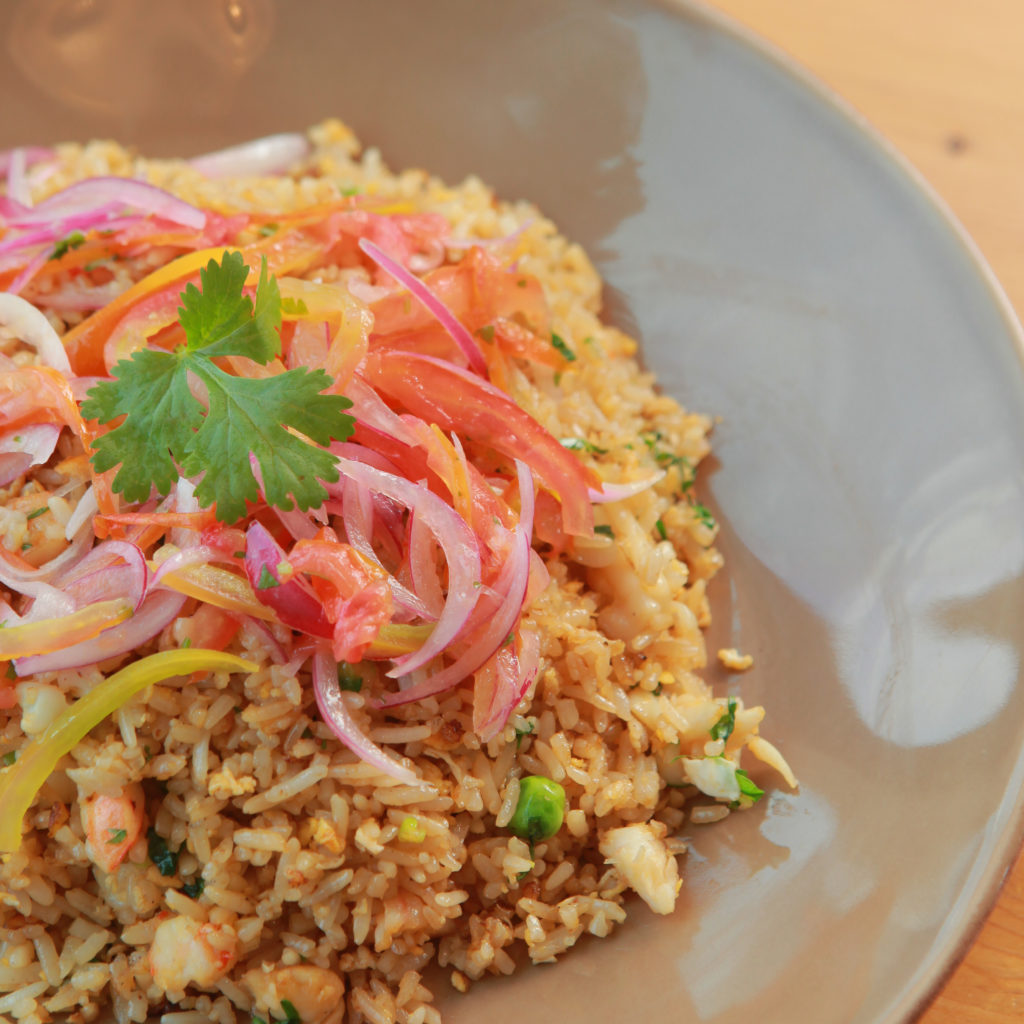 To pair with pork, the Chaufa Kale (Kale Fried Rice) is a flavorful fried side with hints of savory bitterness from the kale and Rocoto peppers. It also comes with its own meaty bite from squid and shrimps tossed in.