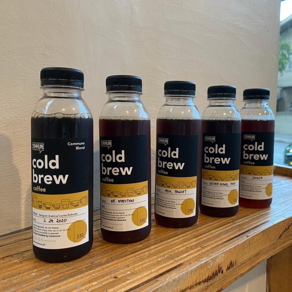 Any frequent Poblacion-goer knows about this corner cafe and events place, and they’ve been keeping their grinders going with a series of cold brews and even some coffee beans for delivery. Their cold brew comes in a collection of 5 variants of local Philippine coffee: Commune Blend (Benguet Arabica, Cavite Robusta cold brew), Mount Matutum