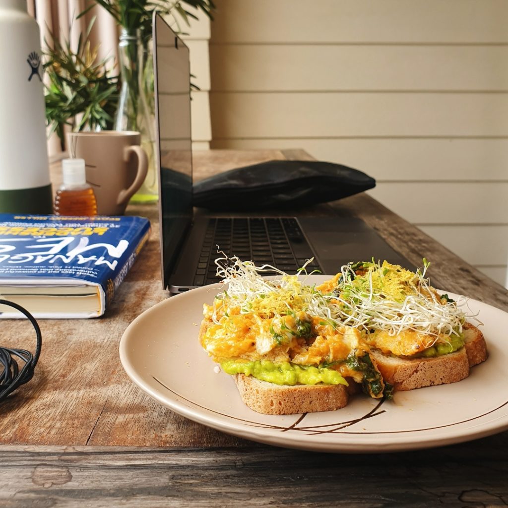 She has a particular fondness for avo toast that she tries on and mixes ingredients to create new flavors. Her usual one includes alfalfa sprouts, egg, chili flakes, and any greens currently available at their home. “Sometimes I put in any of the following depending on what’s available: kimchi, mushrooms, tomatoes, shredded chicken, and tuna,” she adds.