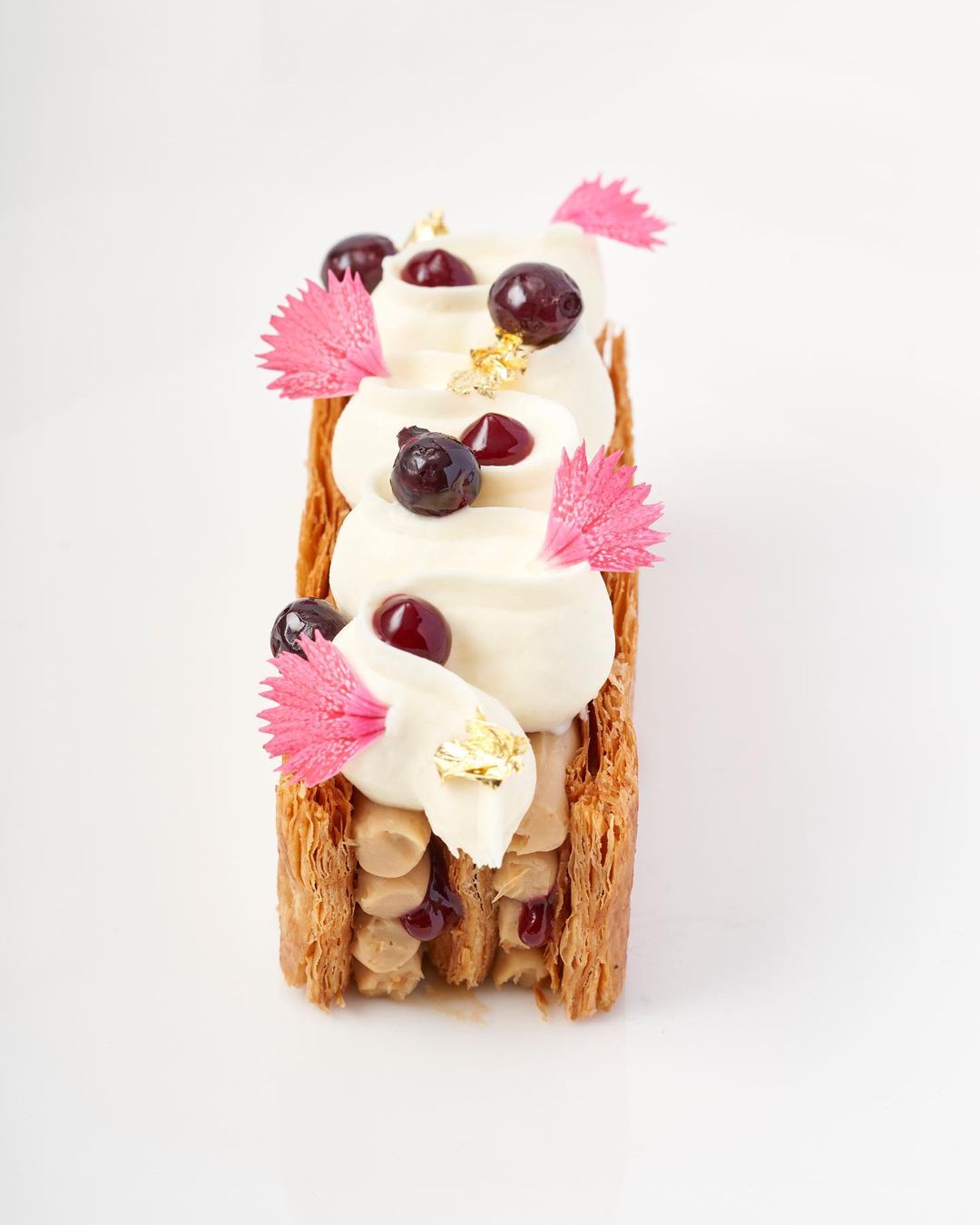 The restaurant’s decadent desserts are assembled à la minute. These sweet treats include Chocolate Soufflé, Pavlova (pineapple-basil compote, mango-rhum gelée, coconut espuma, candied lime, lime meringue), and Mille-Feuille Ispahan (michel cluizel elianza 33% white chocolate-rose chantilly, lychee mousseline, raspberry-vanilla gelée, pâte feuillette).