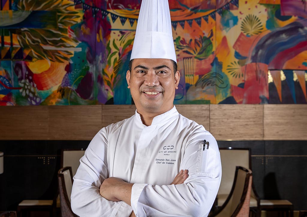 During the 10 years he worked overseas, he mastered his craft and reaped awards, particularly in live cooking competitions at the Horeca Kuwait Culinary Show from 2013 to 2015. In 2016, his first year as City of Dreams Manila’s Chef de Cuisine of banquets, San Jose led a team to gold at the Philippine Culinary Cup.