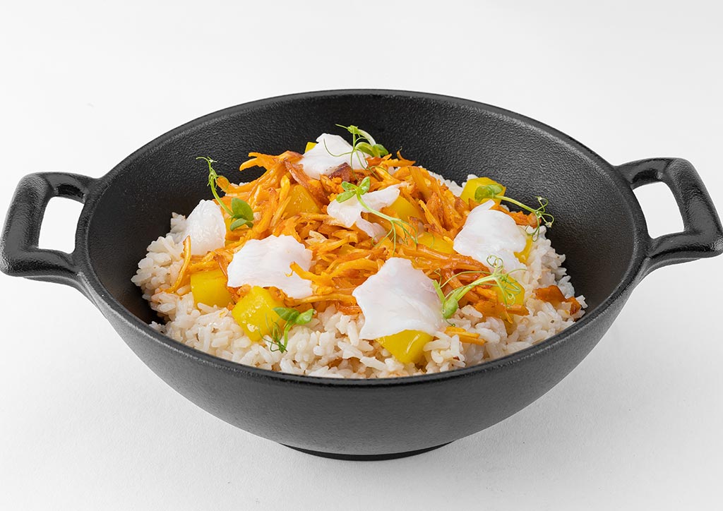 Rice being a staple in Filipino dining, has its share of the limelight in Haliya: Binakol rice with pulled chicken inasal (grilled chicken), chayote and coconut meat; Tinapa (smoked fish) rice with aligue (crab fat) and tinapa salsa; fried rice with crispy fried garlic, and steamed rice.