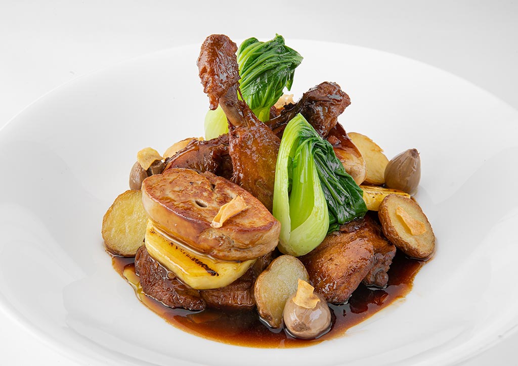 Haliya also prides itself with its Pangunahing Ulam or viands consisting of familiar hit dishes. Its signature dish is the Haliya Adobo, which features twice-cooked chicken, foie gras, grilled pineapple, shallot confit, baby bok choy, marble potatoes, set in lush adobo glaze and enhanced with golden crispy garlic chips.