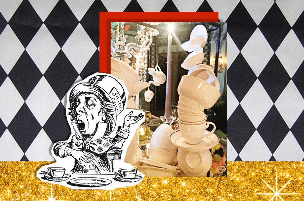 The table decor was inspired by Lewis Carroll’s Alice in Wonderland. Centrepieces of cups and saucers were piled on top of each other, chipped and glued back together to create towering centrepieces. Cups dangled from candelabras with lighted candles. Roses and tulips bloomed among lilies and carnations. It was a spectacular tablescape conceptualised and executed by internationally acclaimed Manny Samson. Manny envisioned a feast for all the senses, calling the dinner Au Plaisir des Sens.
