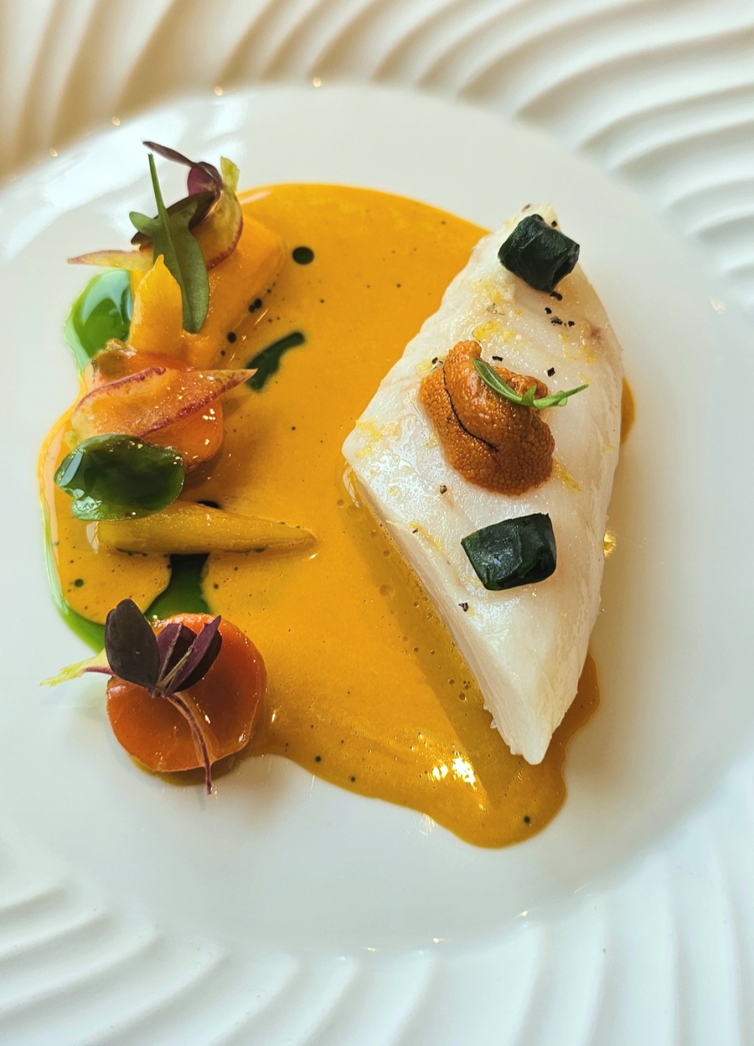 More than a fine dining establishment, a meal at Epicure is an immersive experience where vibrant colors, aromas, flavors, and textures unfold like a coordinated symphony to stimulate one’s senses. Seamless and perfectly timed, the exceptional table service is a pure reflection of Faye’s cuisine, incorporating traditional protocols of Grand Service where appropriate, from precise cutting and expert plating to finely seasoning dishes in front of the guests at the dining room. Sauces are poured and truffles are shaved before the diner’s eyes.