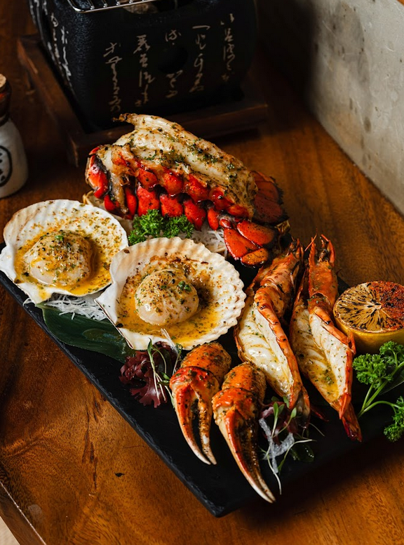 The menu focuses on three core elements: steak, sushi, and izakaya (an informal Japanese bar that serves food and drinks). The kitchen is led by the restaurant group’s executive culinary team, Chefs Yonemoto Kazumasa and Richie Buenaventura. They bring their expertise in grilling techniques to the forefront, showcasing premium cuts of Wagyu beef and Tomahawk Ribeye. Sample their Wagyu Moriawase – a sampler of A5 Wagyu cuts with Kagoshima rib eye and striploin and Ohmi chuck eye. You can grill this on the table yourself or have it sent from the kitchen already cooked.