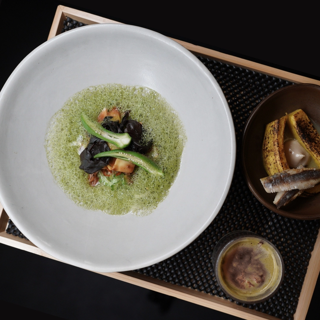 The first movement already perfectly captured what Metiz is all about: fresh produce, done right. Simply called Ensaladang Gulay and Buttered Vegetable on the menu, it featured twenty different vegetables, each prepared in its own way: some fermented, others done bagoong-style, some sautéed in butter, and a few served as they are. Every element in the multi-plate setup (including additional touches like smoked local sardines and boiled cashews) was so distinct and well-executed that it showed just how skillfully the kitchen could turn humble ingredients into something special. It’s no surprise they earned a citation as one of Asia’s 50 Best Restaurants in 2023.