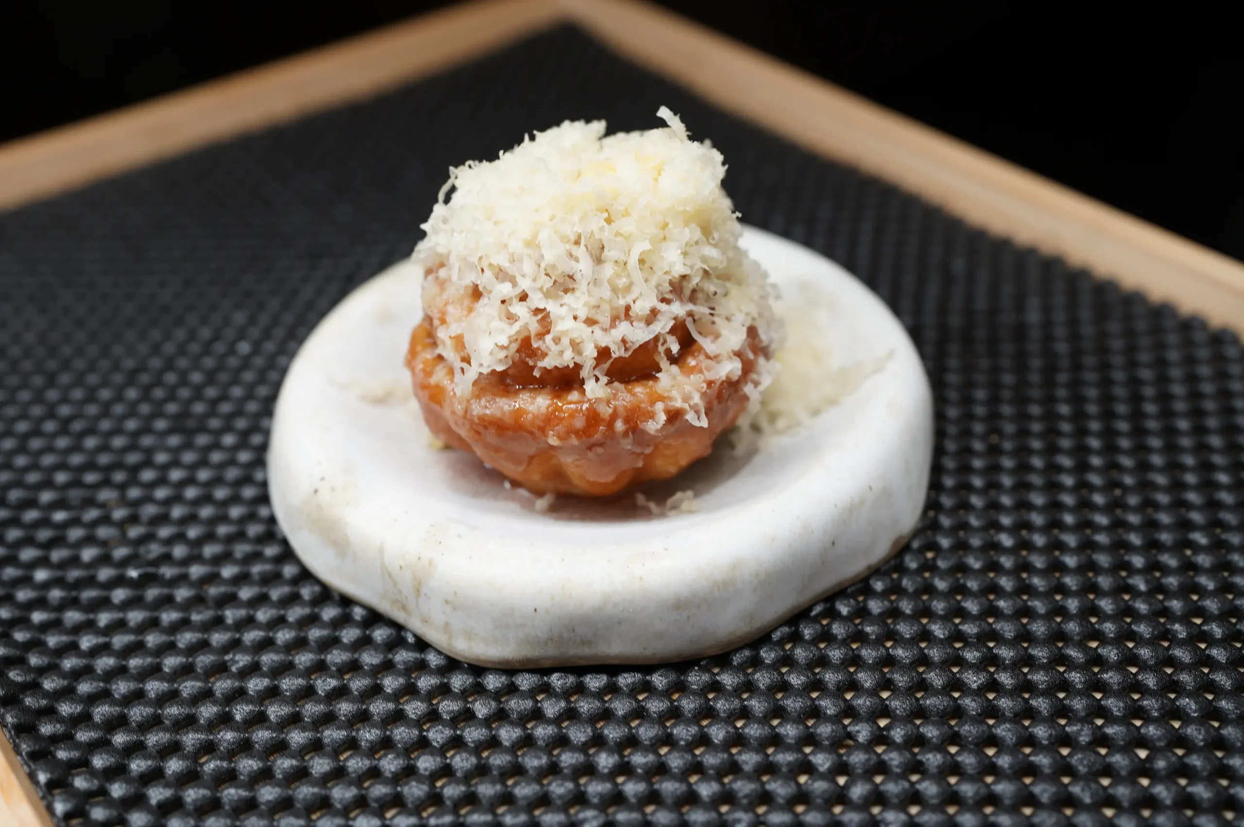 While the savory movements were plentiful (there were so many good ones I didn’t even get to describe), I have to mention the sweet treats served as part of the Gastronome Giving menu. The true knockout was the Ensaimada, one of the restaurant’s signature dishes. Inspired by Chef Stephan’s grandmother’s original recipe, they explained that it was meant to be dense. That sounded a bit alarming at first (it’s not my preference), but any worry quickly disappeared when we watched them grate a mountain of local cheese on top. The moment you taste its combination of rich, dense, buttery pastry against the soft, airy cheese, all your troubles melt away. It’s an indulgent Filipino comfort dish, and I loved it.