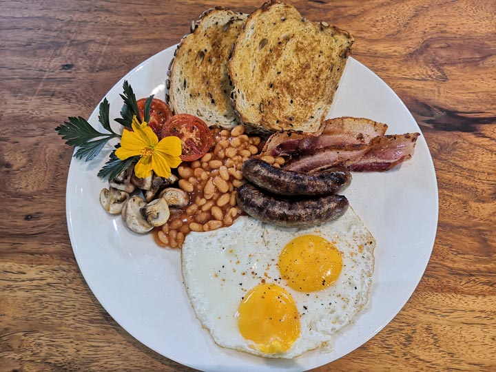 Comfort food is on the menu, too, like the Pizza Rustica, topped with fresh, vegetables, herbs, and spices and baked in a stone-fired oven; Herb Roast Chicken, a Tuscan-style rosemary chicken with lemon and garlic; Beef Barbecue platter, which are smoked and sauced up riblets; Eggs Benedict, a popular American brunch food that comes with English muffins topped with bacon, poached egg, and sauce; and English Breakfast, complete with fried eggs, sausages, beans, bacon, mushrooms, and bread.