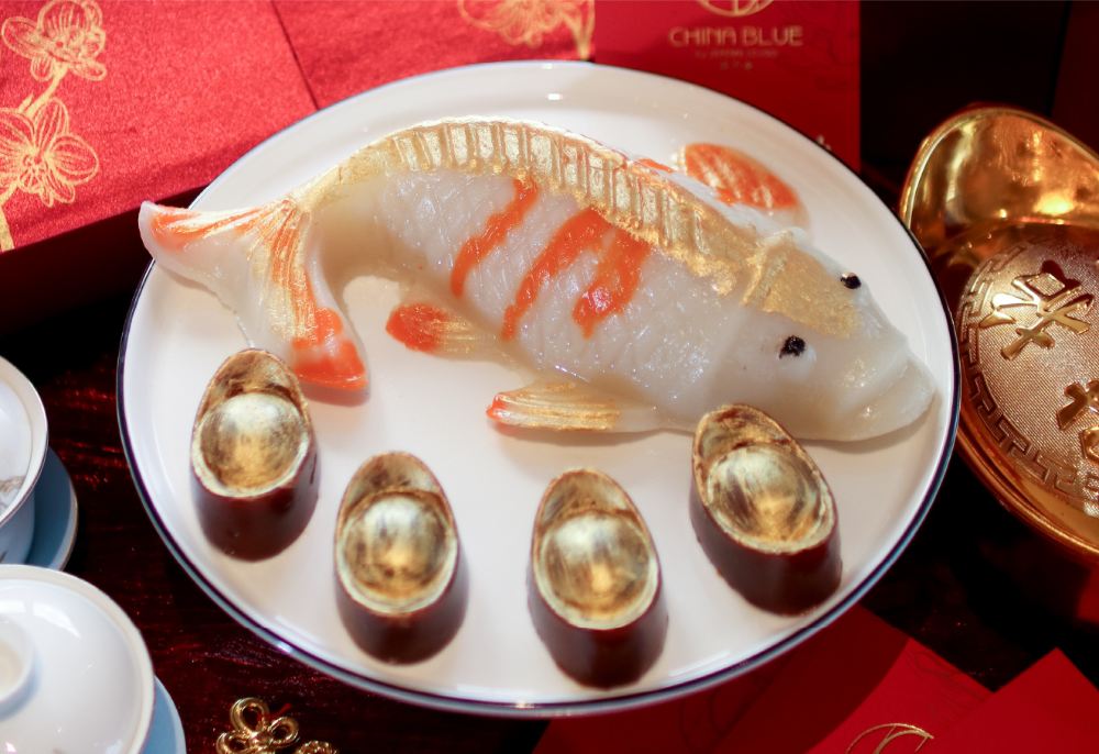 Diners can also bring home a box of nian gao, shaped like a koi fish and mini gold bars, for P2,388.