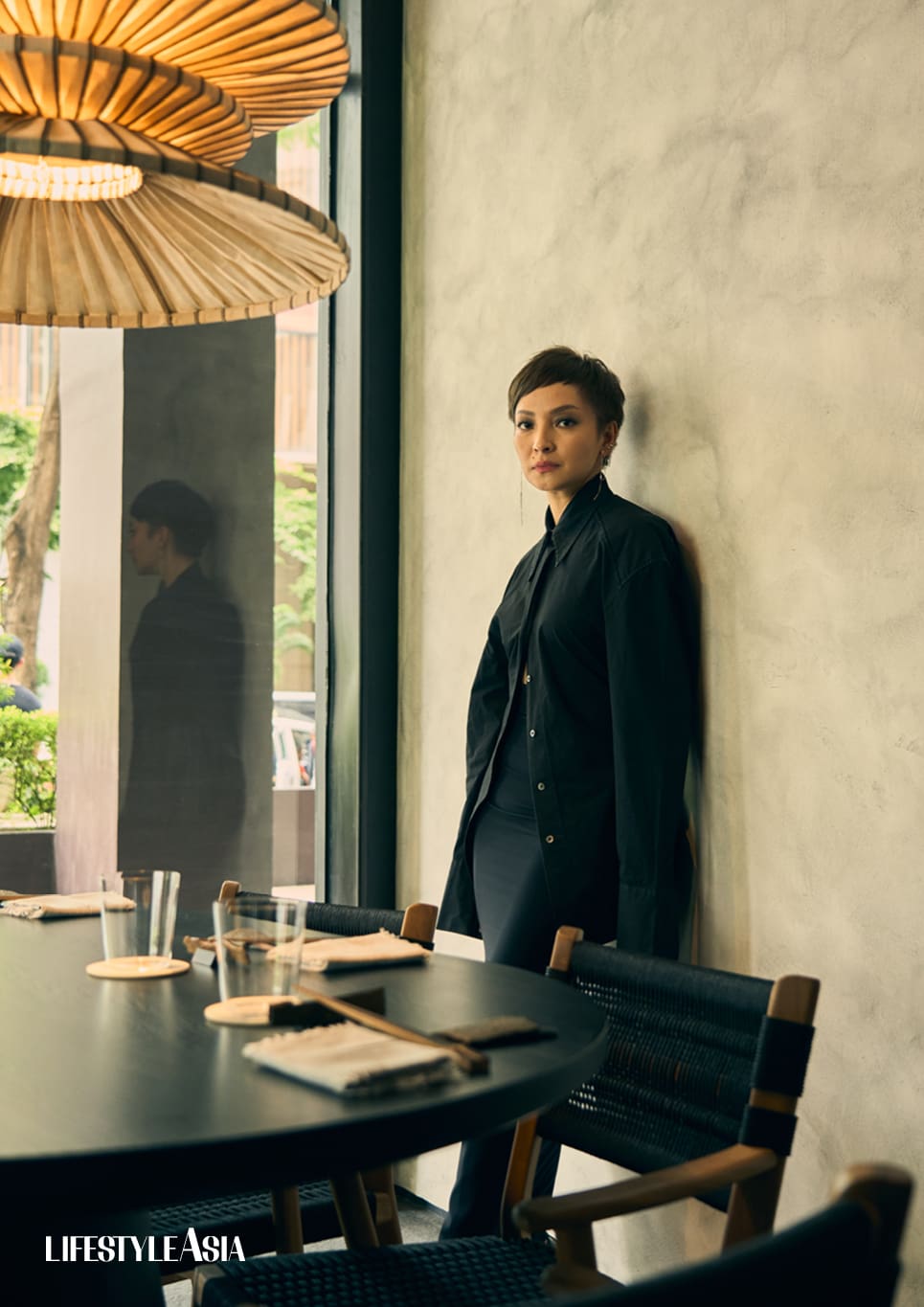 “In our partnership, he’s more than happy to let me run free with the things that I am very interested in,” she states. “And so this space is basically a reflection of these design sensibilities and aesthetics that I’m deeply drawn to. Wabi is a very crucial inspiration behind this.” Wabi is a Japanese concept that follows the philosophy of “less is more,” keeping things simple and elegant through manmade and natural elements that strike a delicate balance. Her other inspirations include Japanese architect Tatsuro Miki, Belgian interior designer and antiquarian Axel Vervoordt, and multi-hyphenated Japanese architect Shinichiro Ogata. Jae even finds a muse in literature and fashion, citing Martin Margiela and “In Praise of Shadows,” a longform essay on Japanese aesthetics by writer Jun’ichirō Tanizaki. She compiled all these inspirations into a vision board, which she provided as reference to Studio Ong, the design group behind Iai.