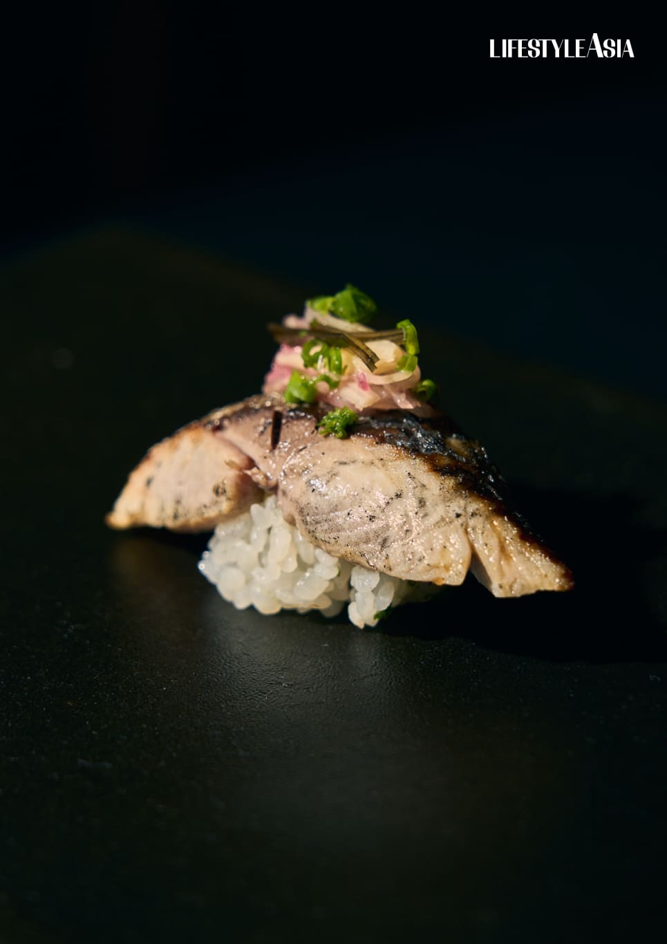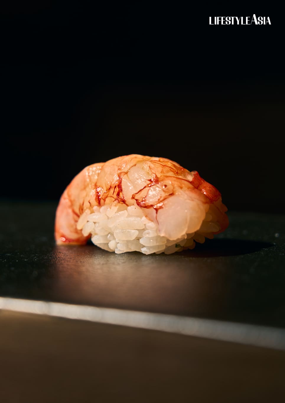 I had the opportunity to try some dishes that Bruce served on the evening of Lifestyle Asia’s shoot, and I can say that his philosophy holds true in every bite. Iai serves its nigiri without a drop of soy sauce to let the seafood’s flavors and textures shine. The Chutoro (the part of the tuna that is somewhere between fatty and lean); Smoked Toro (the fattier part of the tuna); Vinegared Saba (mackerel) with myoga (ginger blossom), scallions, and pickled seaweed; and Gamba Roja (Spanish red shrimp) stood perfectly on their own atop beds of well-seasoned rice, creating a well-rounded blend of salty, sweet, and tart flavors.