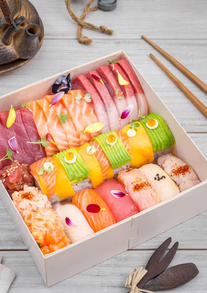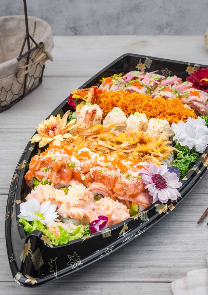 Customers can order family-size sushi and sashimi boats. They may also choose Chirashi and Maki cakes for special occasions, solo sushi boxes, and customizable sushi boxes.