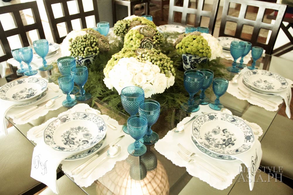 Elements from her husband’s homeland of Portugal influence most of her soirees. “We tend to use a lot of our blue and white Portugese Vista Alegre china, linens and tableware. It’s beautiful to bring something from his culture to our home,” says the gracious host who insists that an exceptional dessert and a fully stocked bar are essential to any successful party. She credits Carmela from Casa San Luis Pastries and Delightful Miss Joyce for always supplying her with delicious desserts, most of which are almost too pretty to eat. Chef Jessie Sincioco and Happy Concepts Group are caterers often enlisted to help in food preparations. Despite the expert help, Rocio will also make sure to include one or two dishes created in her own kitchen. “This will give it a personal touch,” she explains. “Every home has a signature dish and homemade specialty. As of now our gazpacho from my husband’s grandmother’s recipe is a smash hit.”