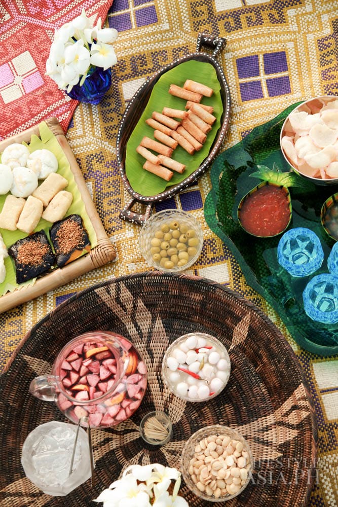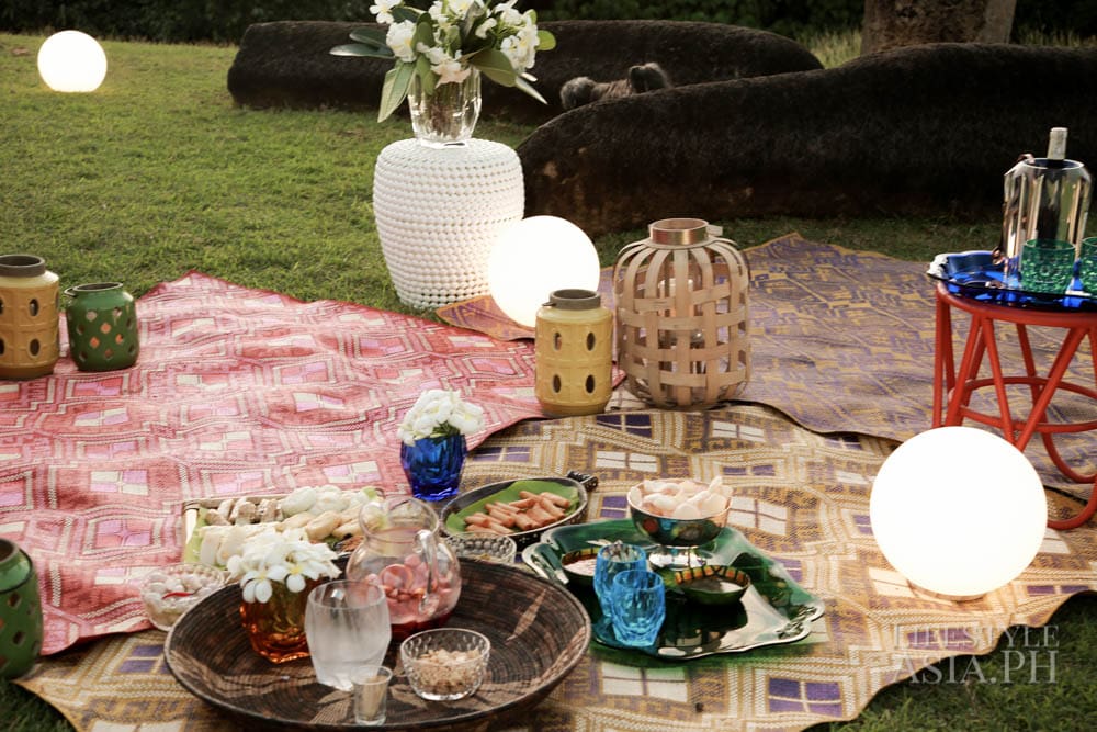 Bianca, Natalia and Maria willingly obliged to prepare lunch in the family getaway, miles from the city. The set-up in the garden was done under the shade of tall trees, surrounded by local flora and lush greenery. Later in the day, they spread locally woven mats in another part of the property with a panoramic view of the sky transitioning from afternoon to early evening. It was sunset cocktails amidst Stonehenge-like rocks, brought in from a neighboring Asian country. They nibbled local pica-pica and poured sangria from a pitcher. By evening, the glow from moon-like orbs, solar-lit around the picnic area, added a touch of evening mysticism. Even as it was out of the ordinary, the setting came together effortlessly, conjured by imagination, curatorship and fine tastes.