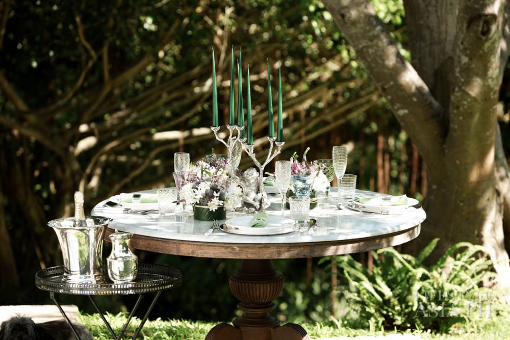 “We mix old pieces with modern trends. We apply old world customs such as name cards and add smaller, silver items passed from our lola, like candelabras and vintage toothpick holders. These are mixed with new, playful, colored acrylic glasses or colored napkins.” Having three individual styles that work all on one table contributes to the uniqueness of their set-ups.
