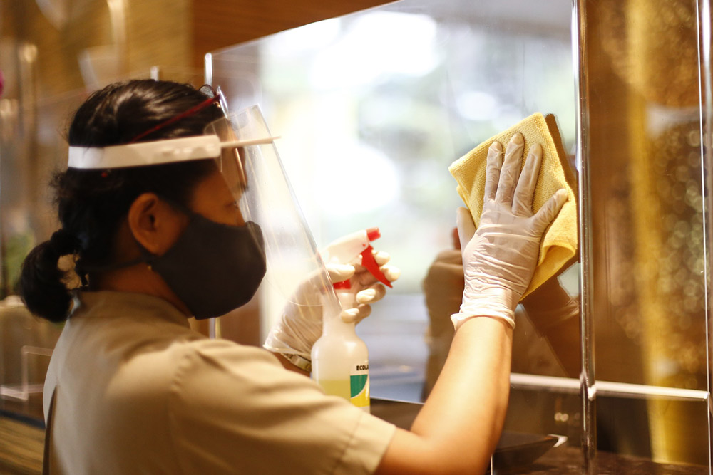 Upon entering the hotel, inspection points for thermal scanning, hand sanitation, and foot baths are available for guests to use. Floor markers are also laid out to exercise social distancing. And before heading to the restaurant, accomplished health declaration forms and prior reservation are required as only a limited number of guests are allowed to dine-in.