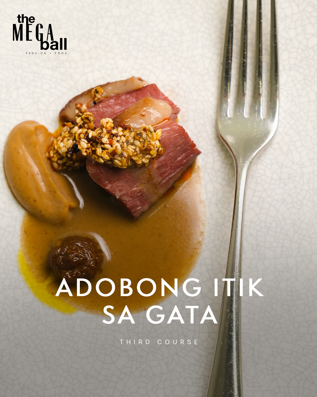 The third course, Adobong Itik sa Gata [duck adobo in coconut milk], was chefs Josh Boutwood and Stephan Duhesme’s innovative spin on the beloved adobo dish [a meat dish usually marinated in garlic, vinegar, soy sauce, and bay leaves].