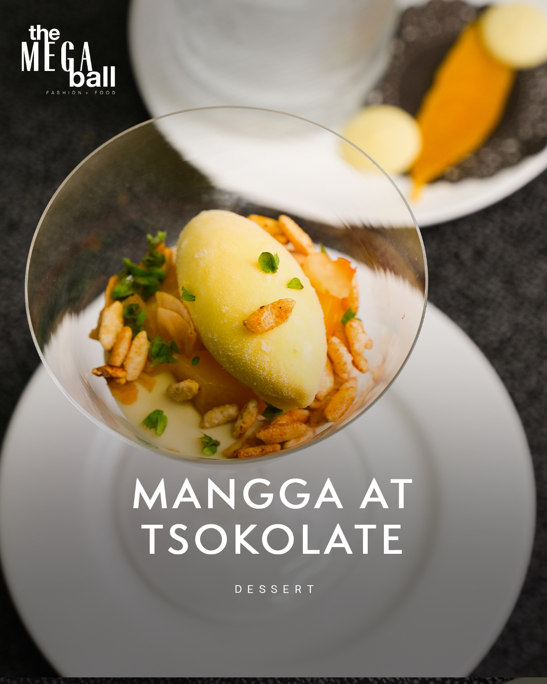 Given how many Filipinos possess a love for all things sweet, no tasting experience is complete without a stellar dessert from Chef Margie Manzke, a finalist of the James Beard Awards [among the culinary world’s equivalents to the Oscars] for six consecutive years and the 2023 winner of its Outstanding Pastry Chef category. Her spectacular treat for the MEGA Ball 2024 was Mangga at Tsokolate [Mango and Chocolate], a delightful dish of toasted brown rice, white chocolate cremeux, and mango.