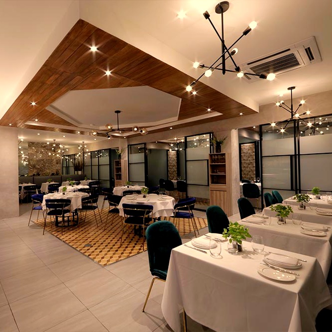 Walking on, you’ll see the dining area composed of tile floors paired with white and off-white decor with some greenery and wood scattered around for a botanical touch. Blue velvet chairs circle the tables while several private rooms are located at the back. Pinot is sleek and homey in its interior design. Relaxed while still emulating a sophisticated taste in its setup.