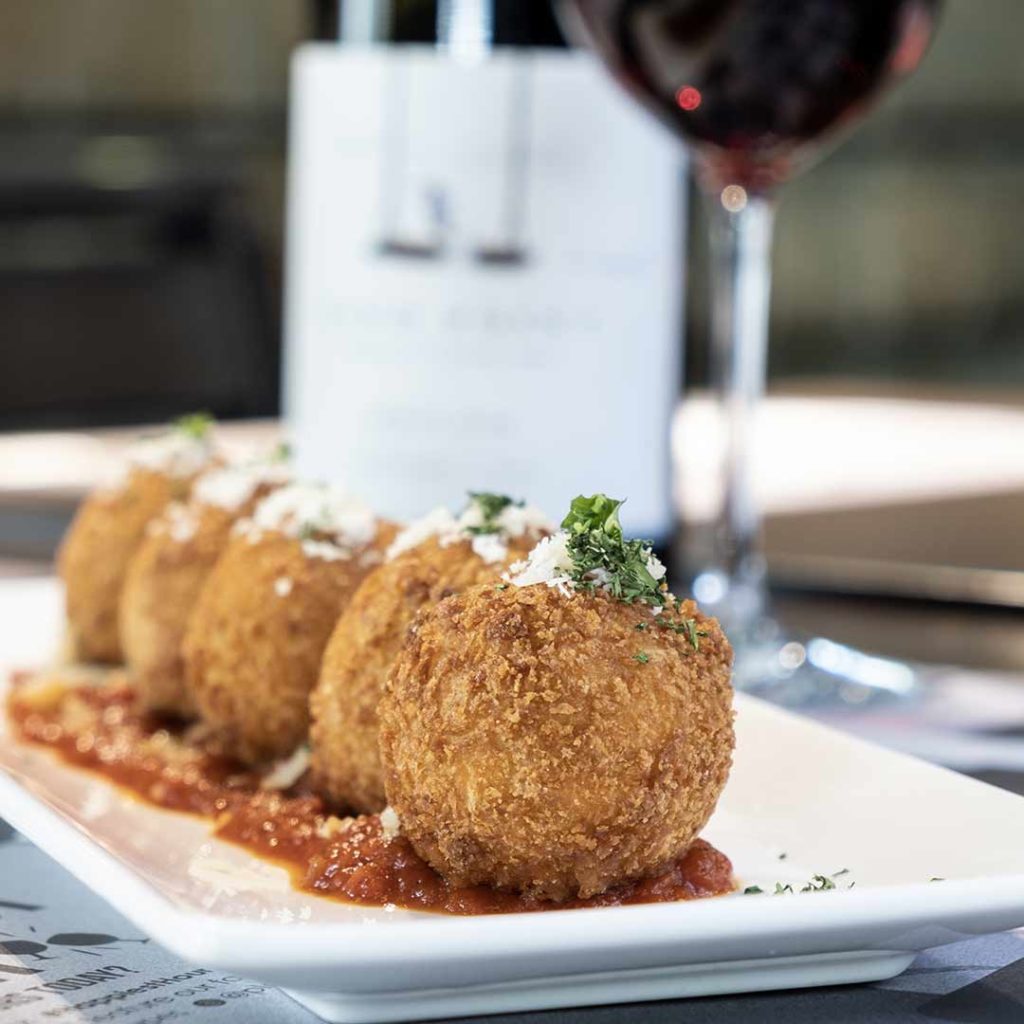 A crunchy start to the meal, these bite-sized croquettes are a savory and gooey treat filled with parma ham for some salty chew and Emmental cheese for a mild creamy taste. The filling is carried by a thick creamy béchamel sauce blending together the flavors of the ham and cheese. The croquettes are served with a dollop of tomato ragout each for some sauce and a slight sour kick to balance the creaminess of the filling. This pairs nicely with their Sand Point Pinot Noir with its fruity and vanilla notes that accent the savory cheesiness of the dish.