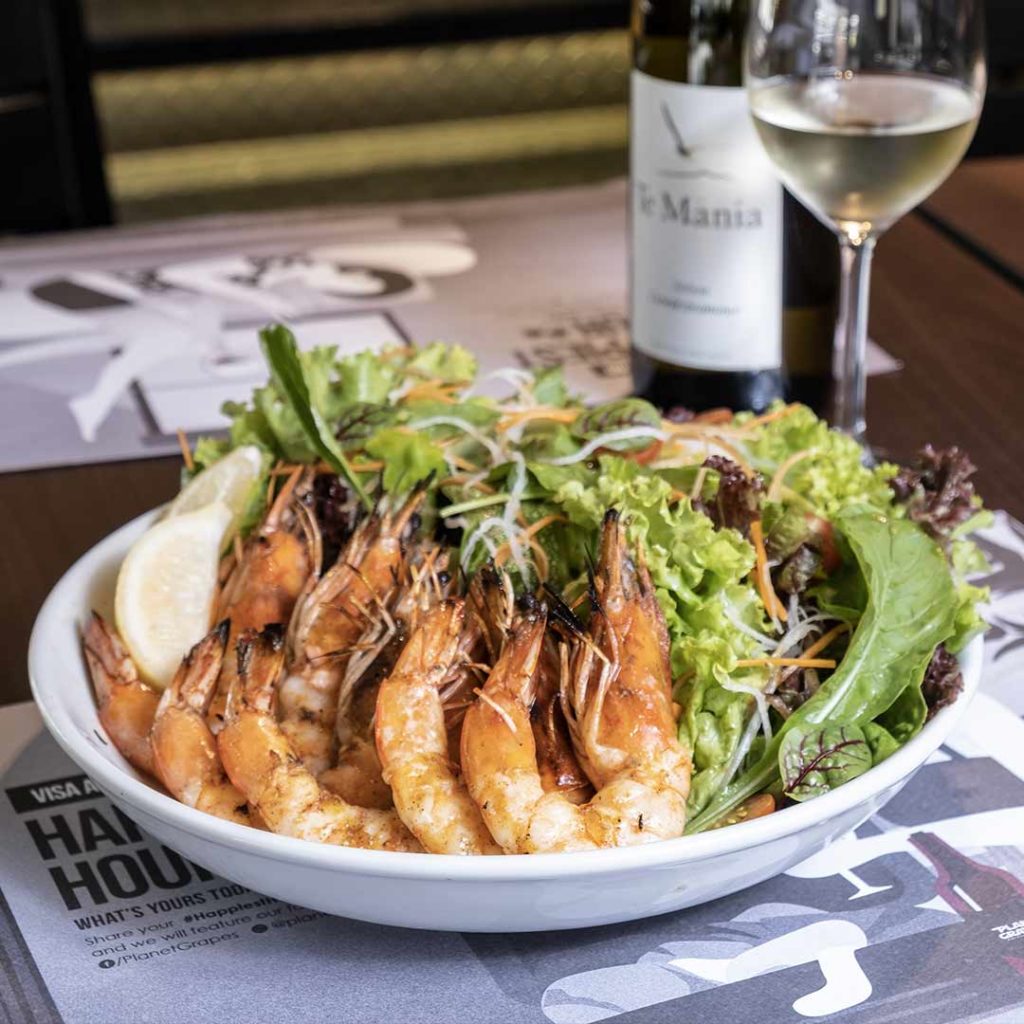 This salad brings a vibrant taste of the sea with its grilled warm water prawns brushed with garlic butter for a richer, fuller flavor. The prawns act as the main protein of the dish with the rest of the salad consisting of mixed greens and a simple lemon dressing that highlight the prawns as the main event of the dish. To bring out more of the salad’s profile, you can pair it with a glass of Te Mania Gewurztraminer, a rich and silky white wine with a slight spice of ginger, cloves, and anise.