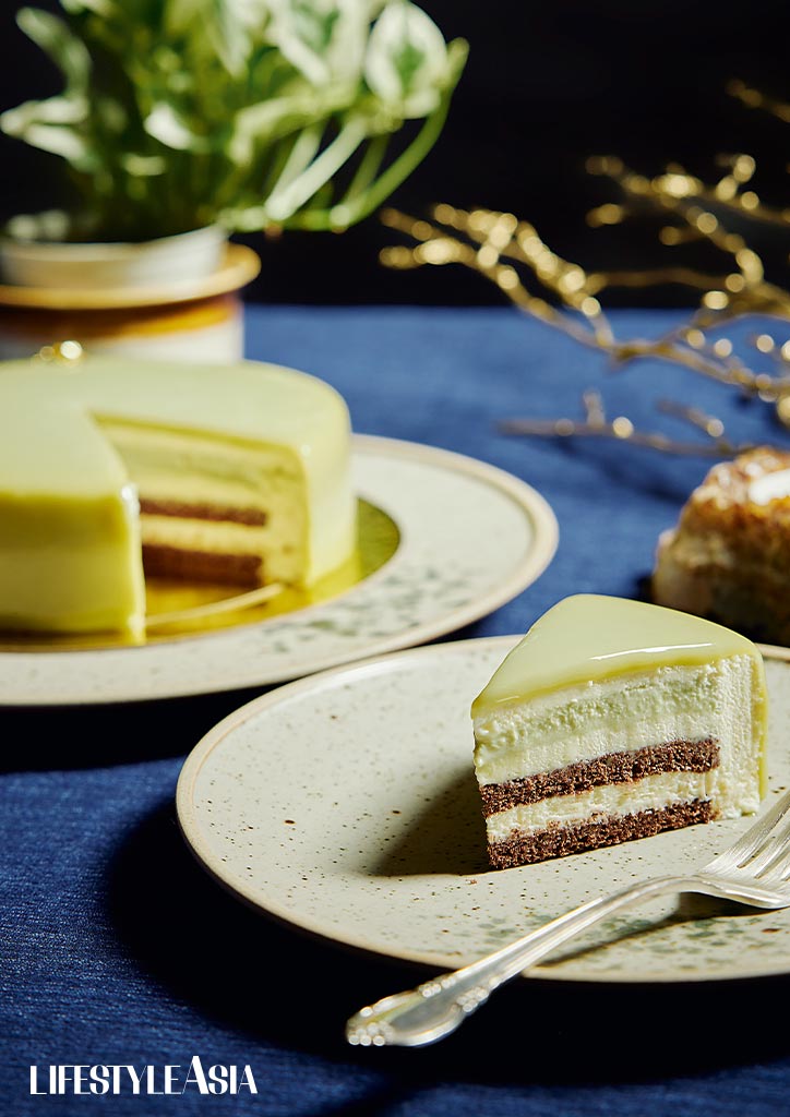 The mainstay mirror cakes are Les Trois Chocholat (Three Chocolate), L’Amour Rouge (Strawberry and Raspberry), Le Mimosa (Champagne Bergamot), Le Matcha (Green Tea Matcha), Le Café Noisette (Hazelnut Coffee), and Obsession du Chocolat Noir (Dark Chocolate Tiramisu).