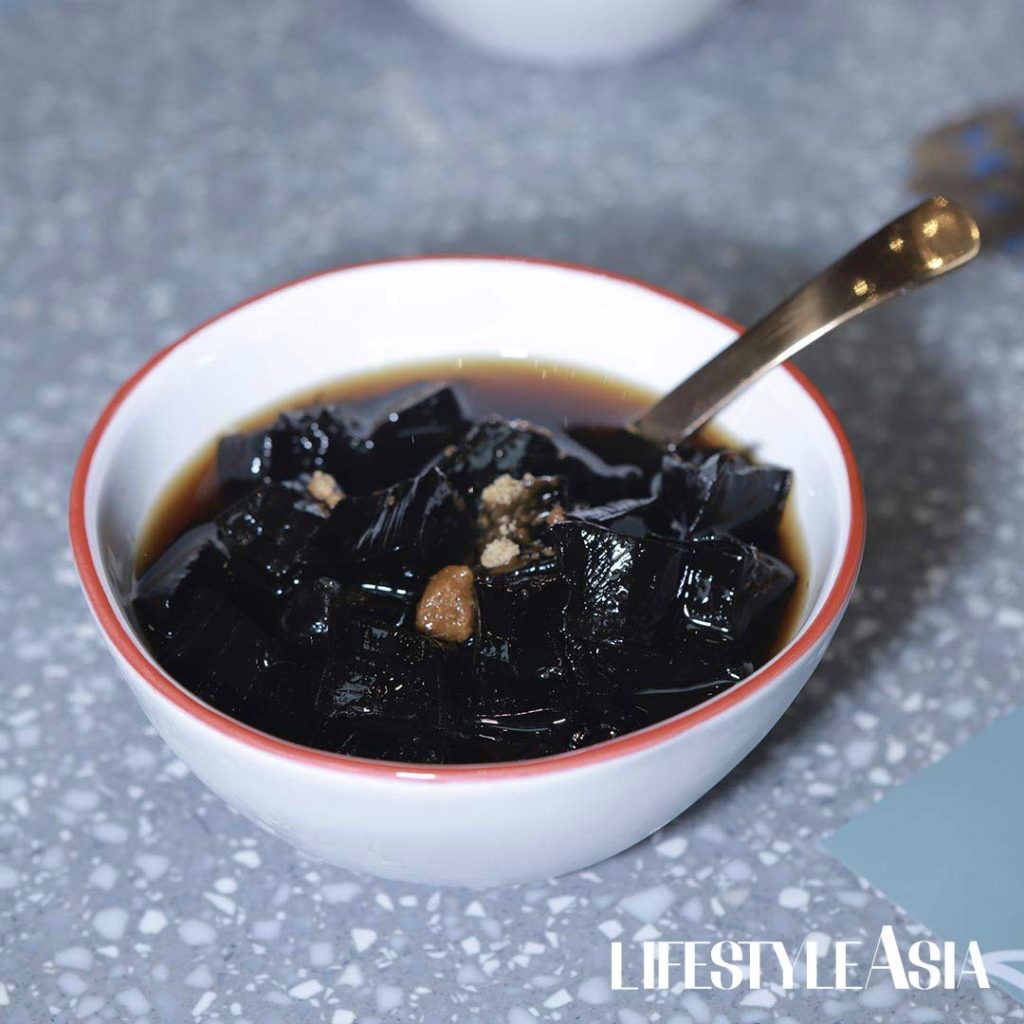 To end the lunch, a brown sugar syrup complements the subtle bitter taste of the grass jelly. Its slight viscous consistency envelopes the jellies. For each bite, the refreshingly sweet taste oozes. It seemingly soothes the taste buds from the pungent profiles of the entire menu.