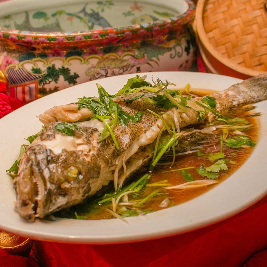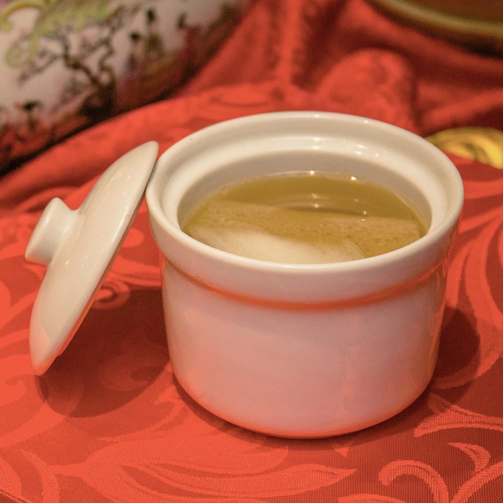 What is a Chinese feast without a double-boiled soup and a whole steamed fish? This Double Boiled Chicken Soup with Sea Treasures lives up to its name. Its light and flavorful broth is filled with many bite-sized treasures such as chicken breast and abalone.