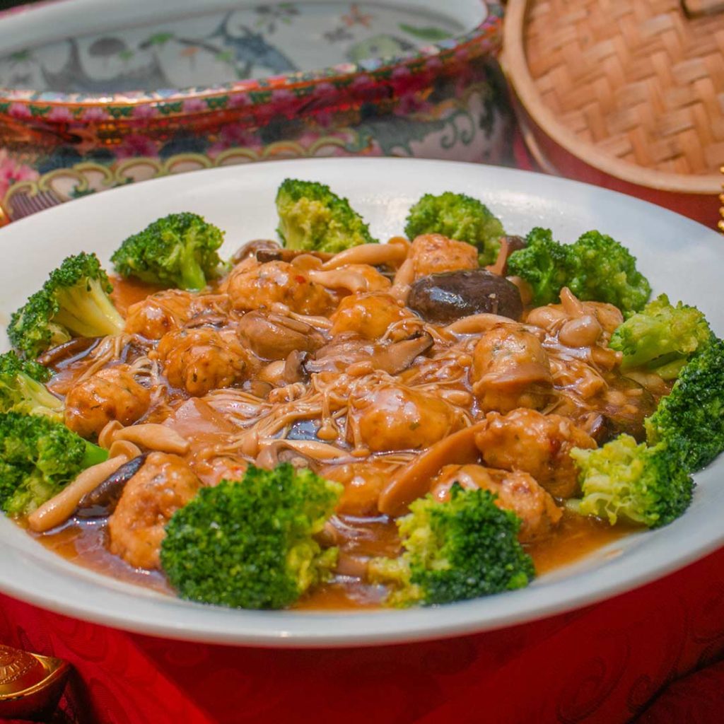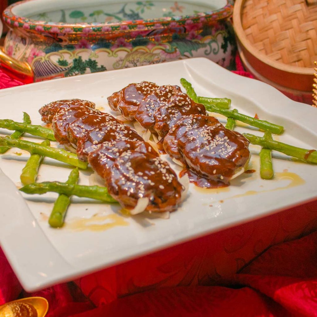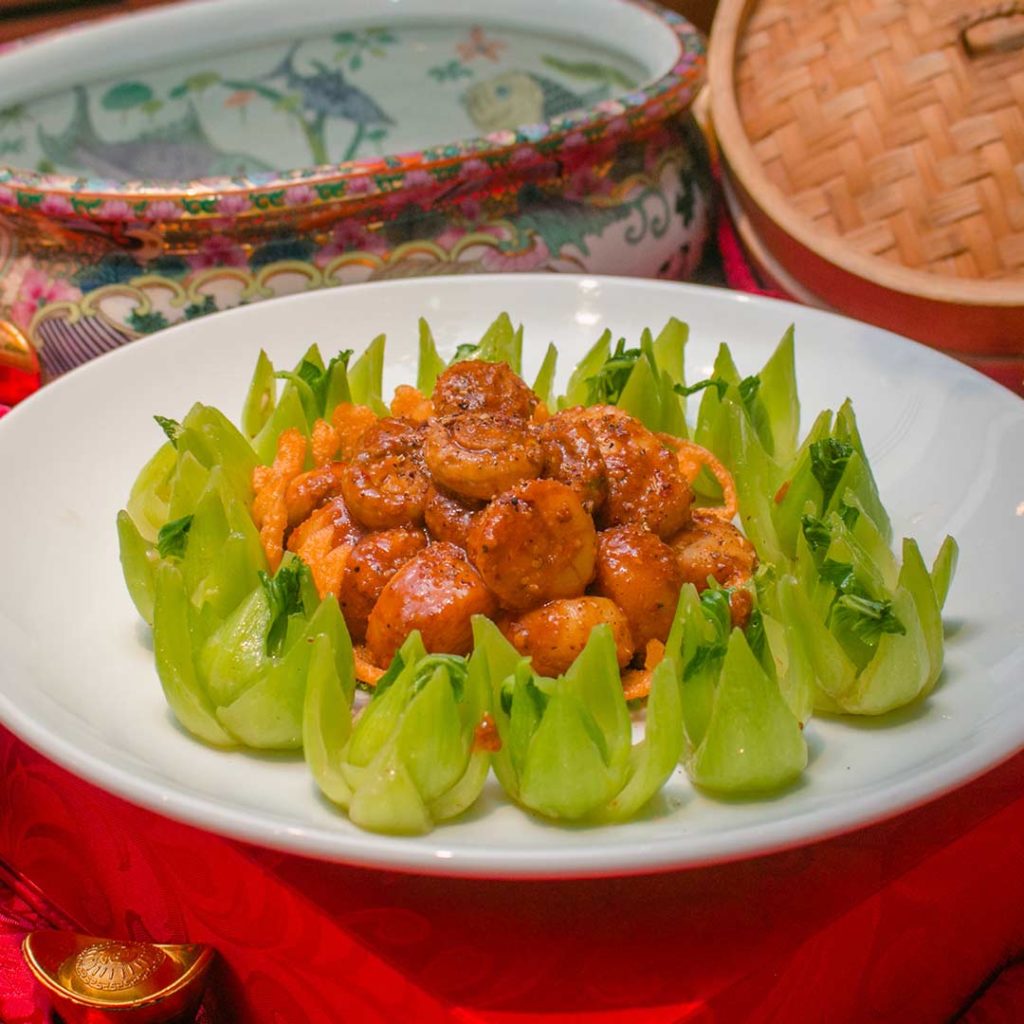 If you’re looking for red meat, we have the Wok Fried Mini Chinese Beef Steak served with onions and asparagus. The pink meat goes well with its deep rich sauce along with some sesame seeds for a hint of nuttiness. Next we go from mini steaks of the earth to the sea. The spicy and creamy sauce of the Pan-Grilled Fresh Scallops in Szechuan Peppercorn Sauce gives a strong flavor that doesn’t overwhelm the palate. The scallops are a delicate tender and is served with some mushrooms and bok choy stalks.
