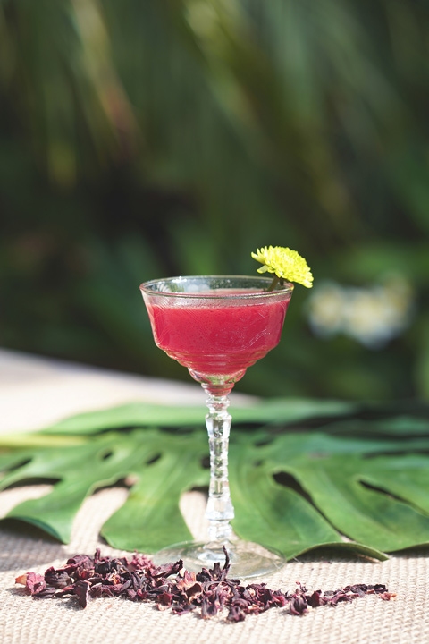 Front and center in this shoot are the Rum label’s new cocktails: Avalon Awakens, a combination of lemon juice, hibiscus syrup, and mole bitters which is then served with an edible flower; and Botanica Obscura, which is a mixture of pineapple juice, lime juice, velvet falernum, and Ube syrup, and garnished with a Pinya wedge.