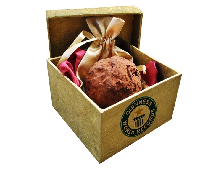 In fact, it holds the Guinness World Record for the priciest, single chocolate. It’s made of 70% Valrhona dark chocolate and includes a ganache containing truffle oil. It holds a French Périgord truffle at the center, which is one of the most expensive fungi in the world.